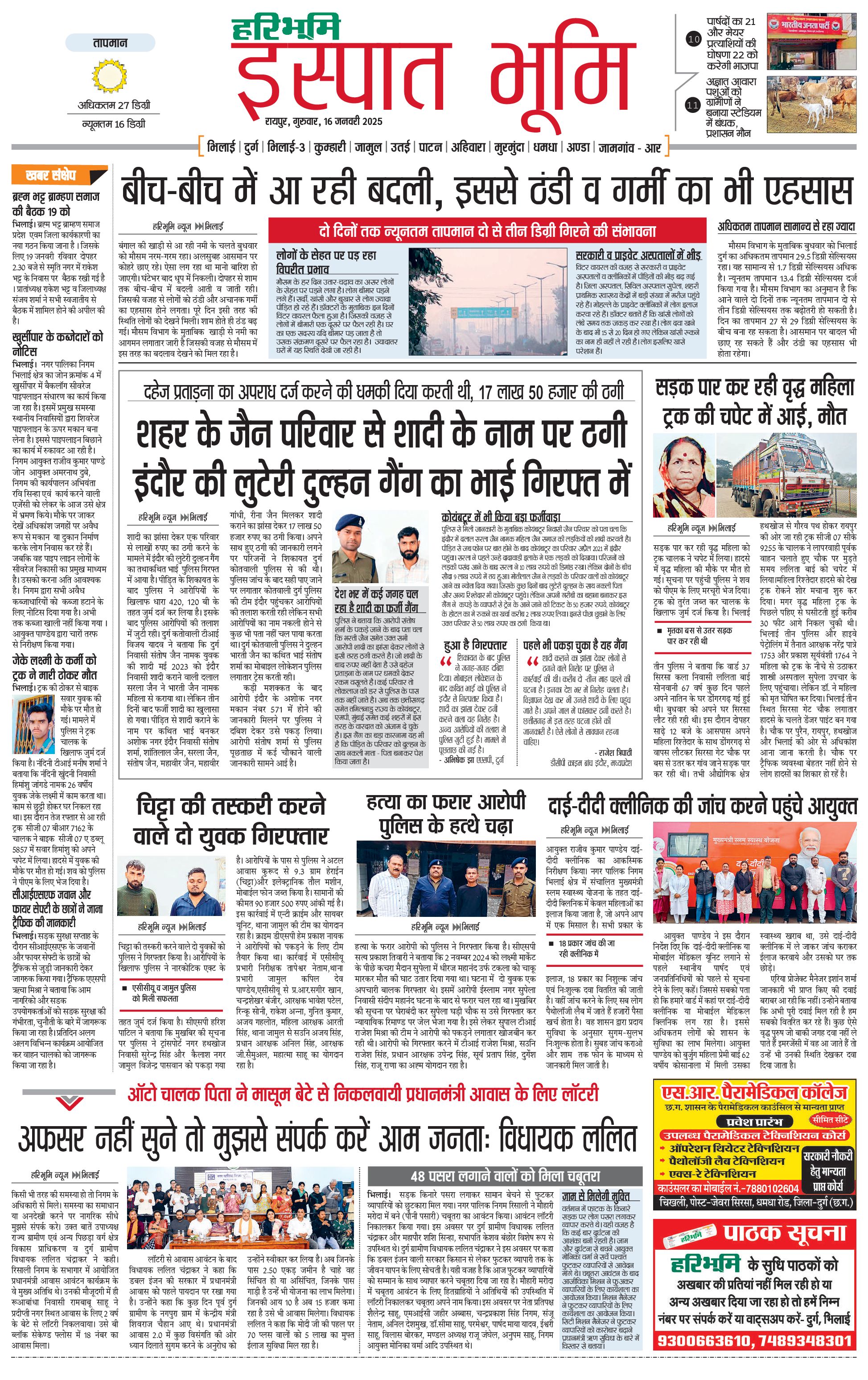 इस्पात भूमि - 16 Jan 2025 - - Page 1