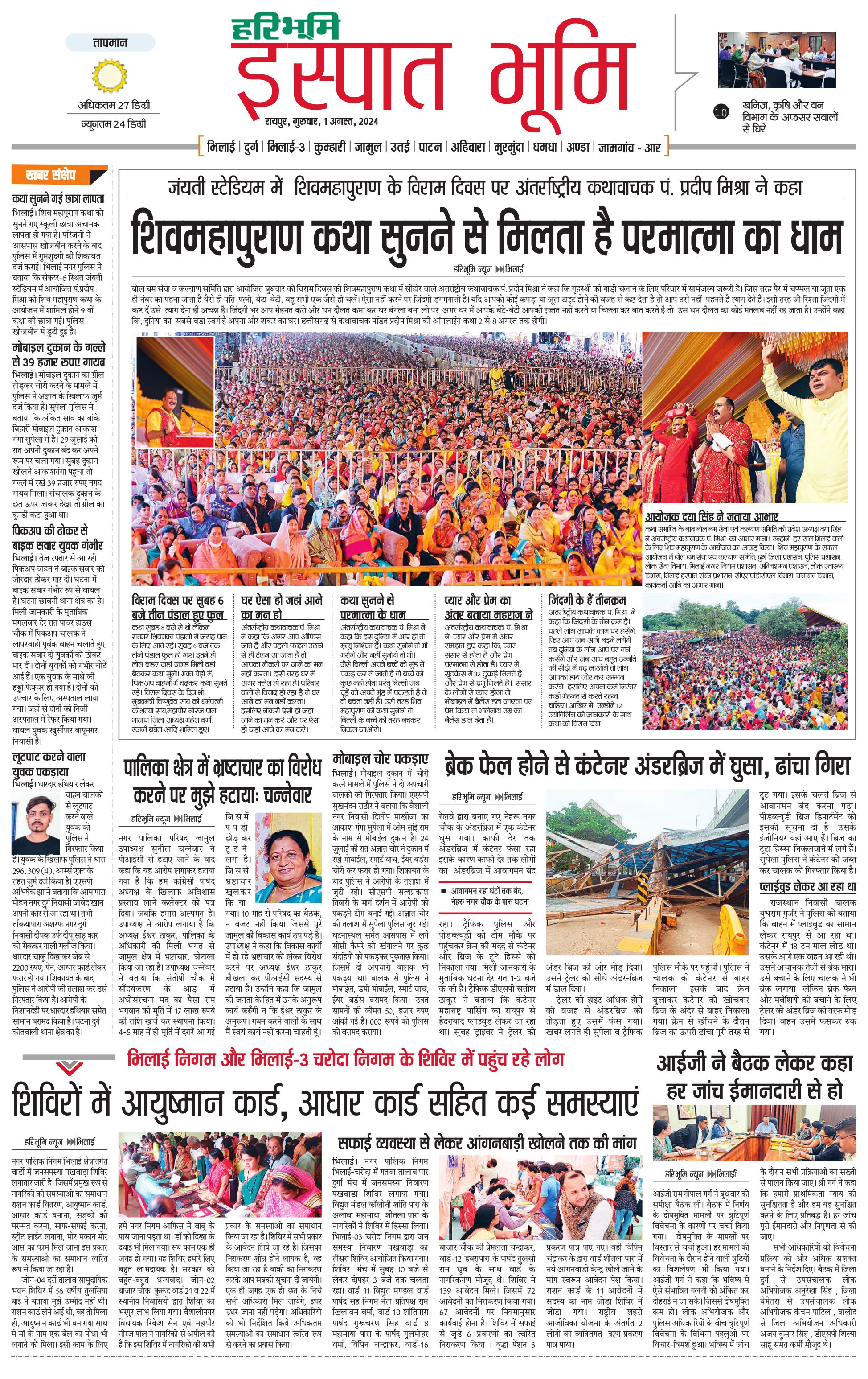 इस्पात भूमि - 01 Aug 2024 - - Page 1