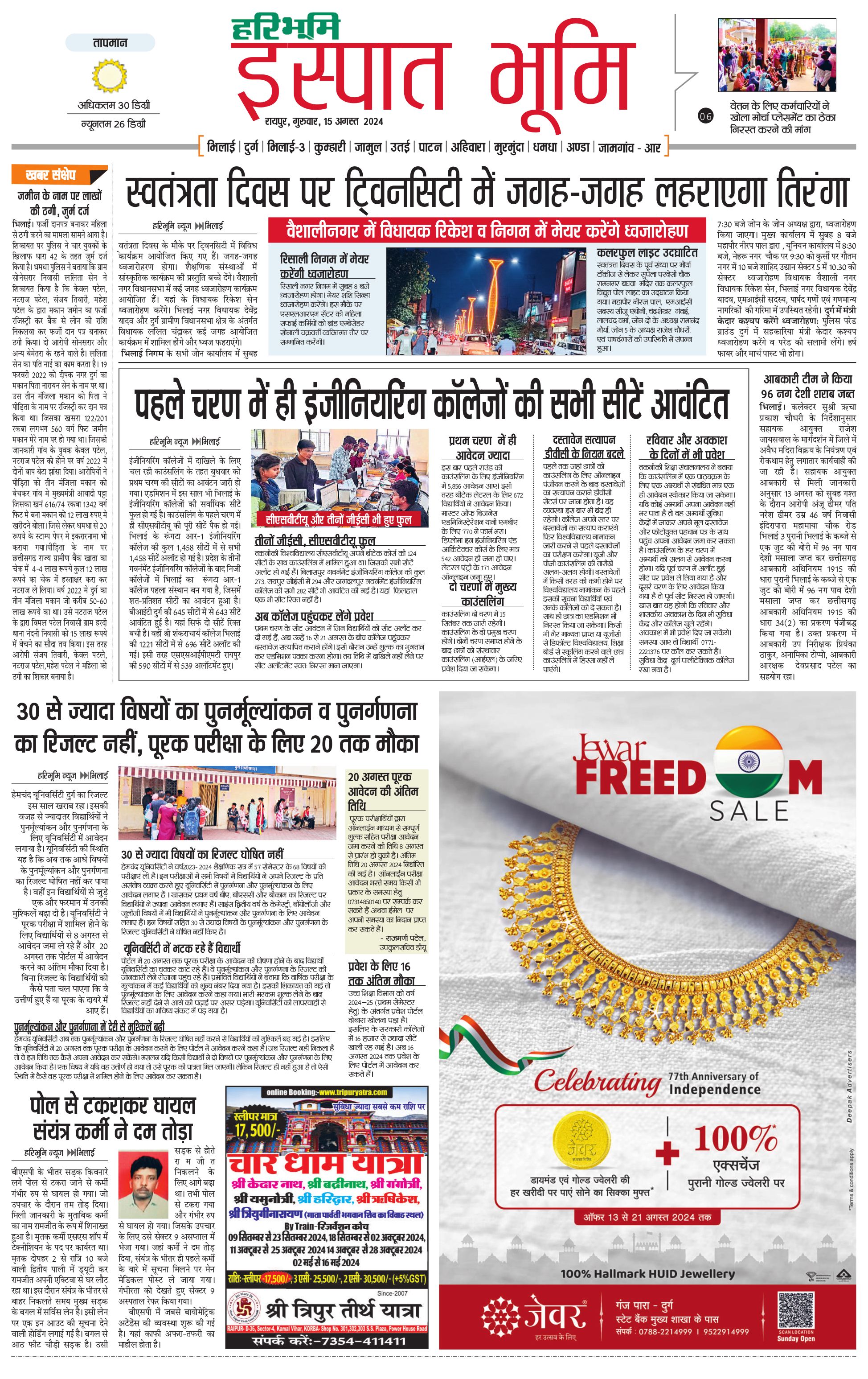इस्पात भूमि - 15 Aug 2024 - - Page 1