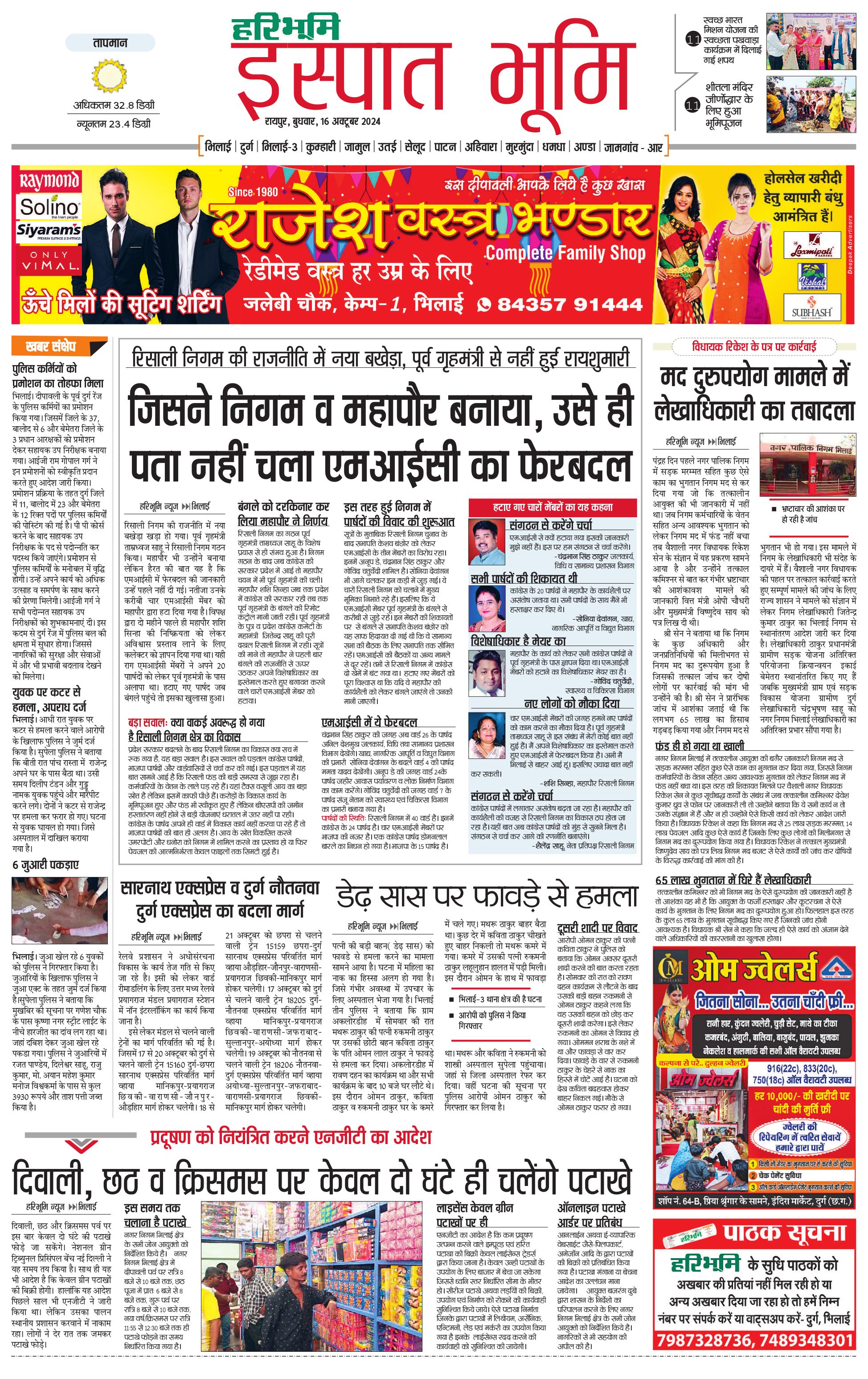 इस्पात भूमि - 16 Oct 2024 - - Page 1