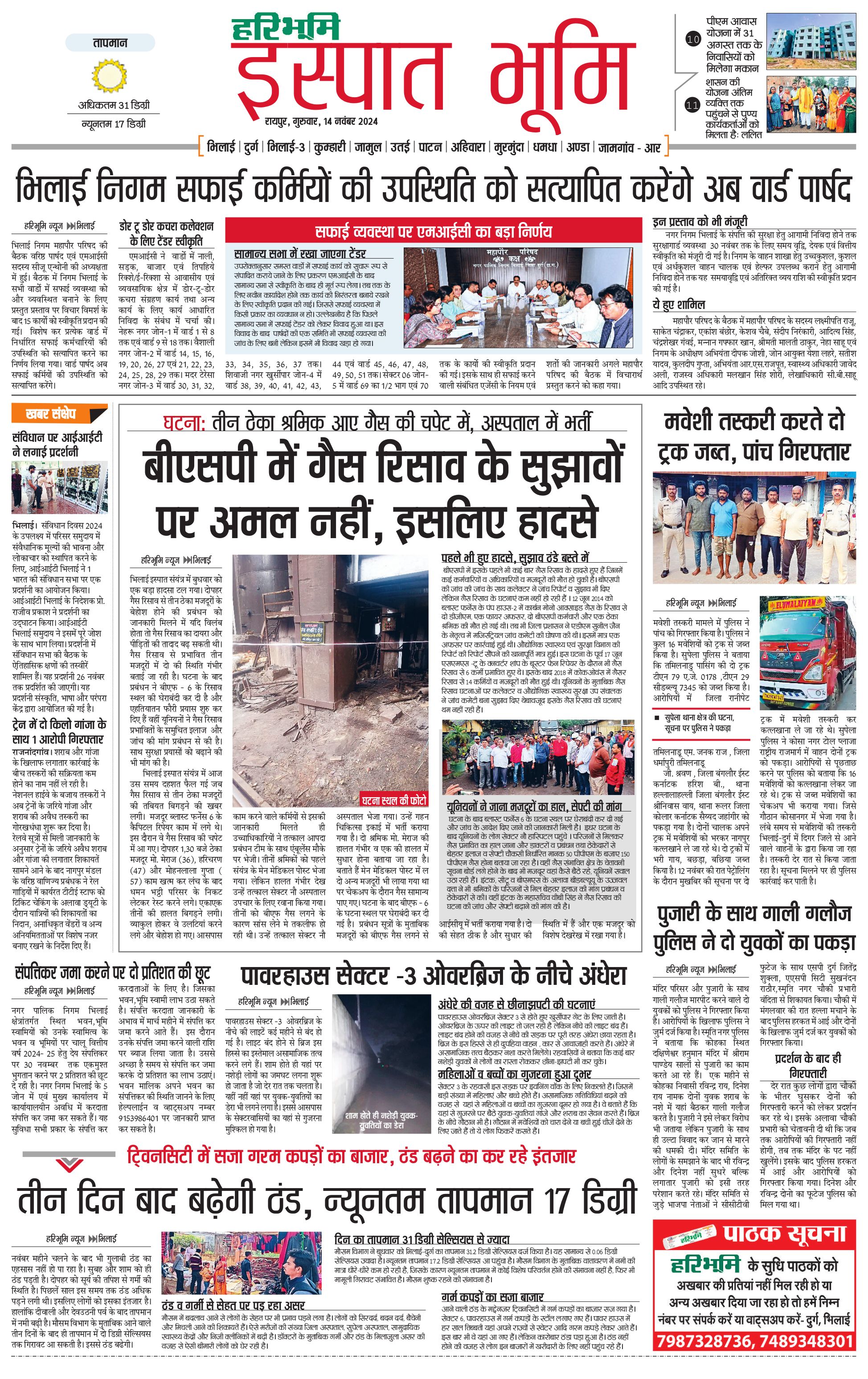 इस्पात भूमि - 14 Nov 2024 - - Page 1