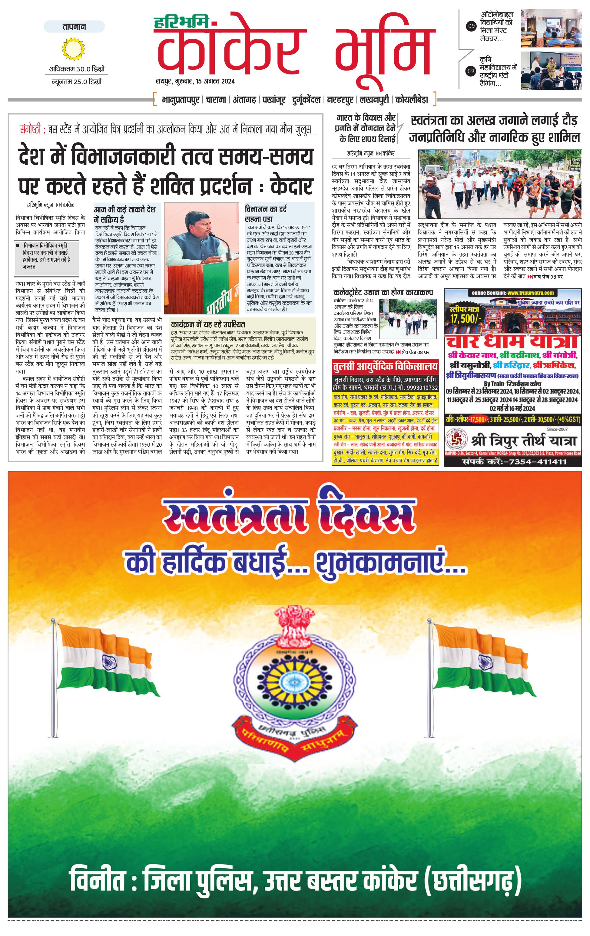 कांकेर भूमि - 15 Aug 2024 - - Page 1