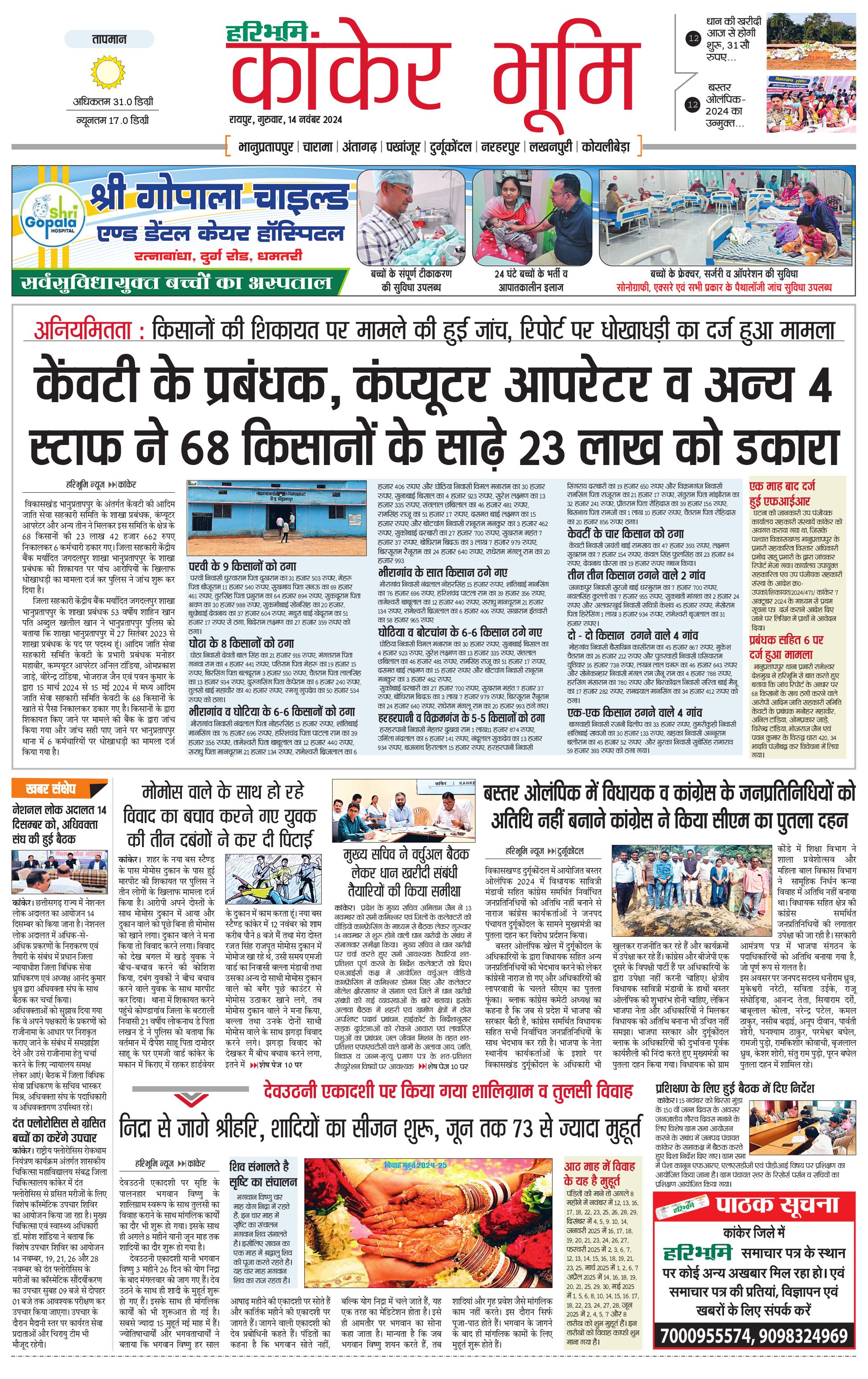कांकेर भूमि - 14 Nov 2024 - - Page 1