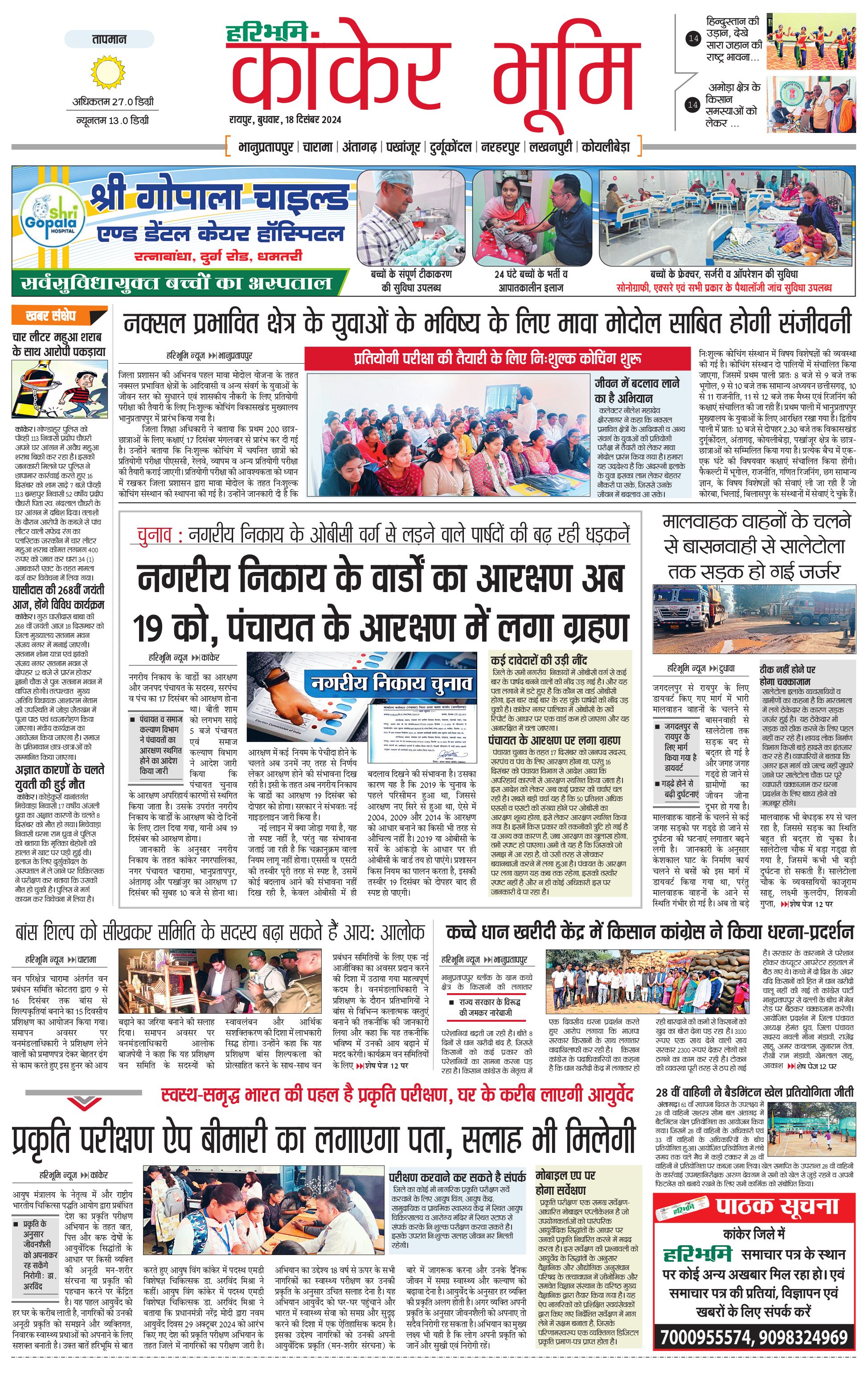 कांकेर भूमि - 18 Dec 2024 - - Page 1