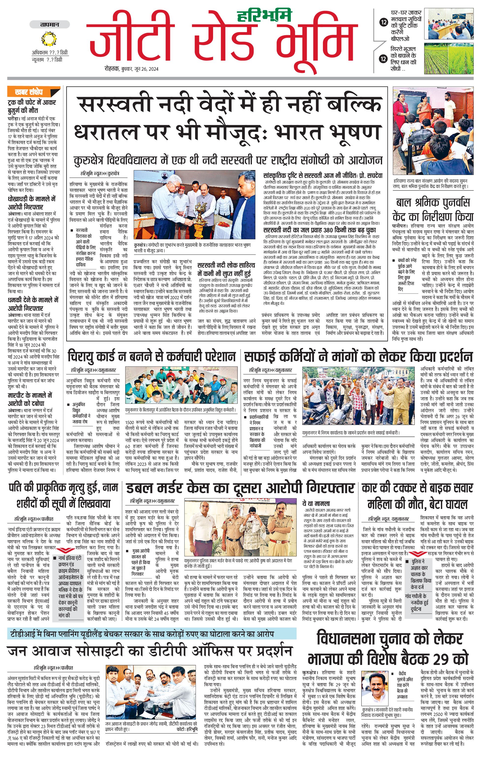 कुरुक्षेत्र - 26 Jun 2024 - - Page 1