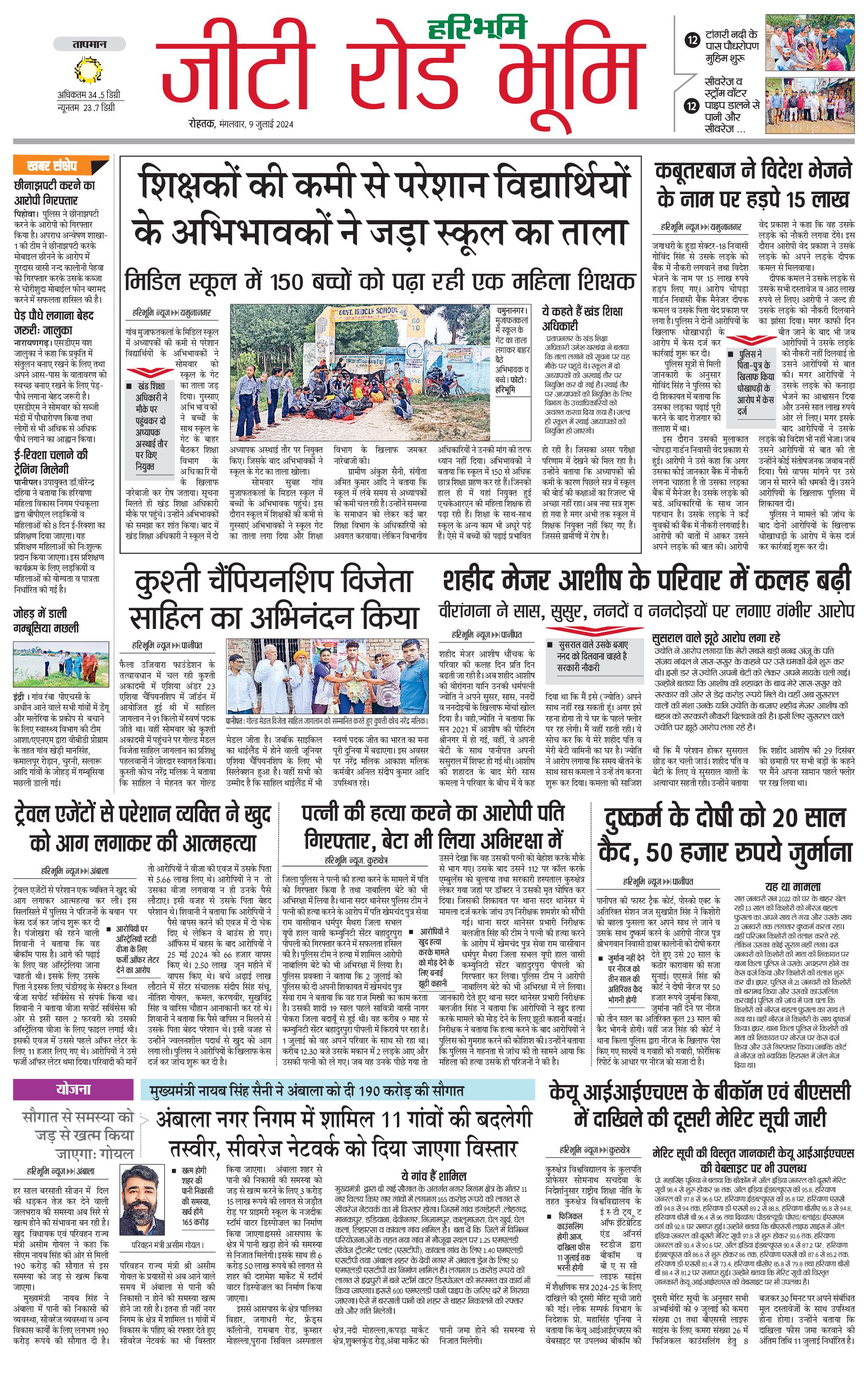 कुरुक्षेत्र - 09 Jul 2024 - - Page 1