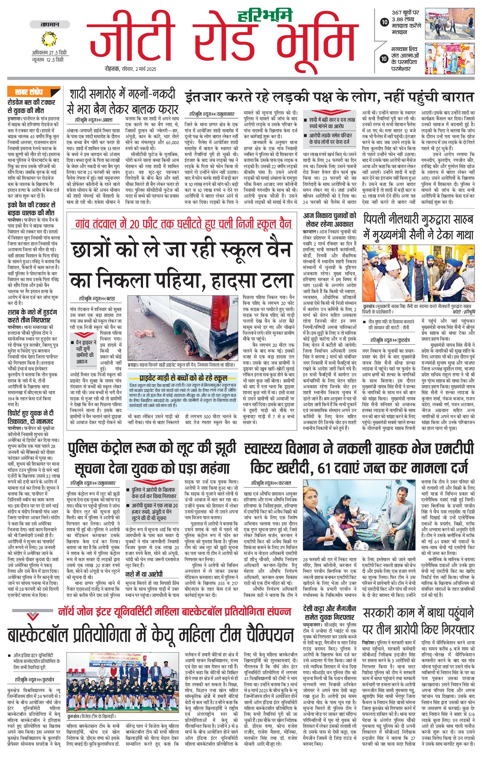 कुरुक्षेत्र - 02 Mar 2025 - - Page 1
