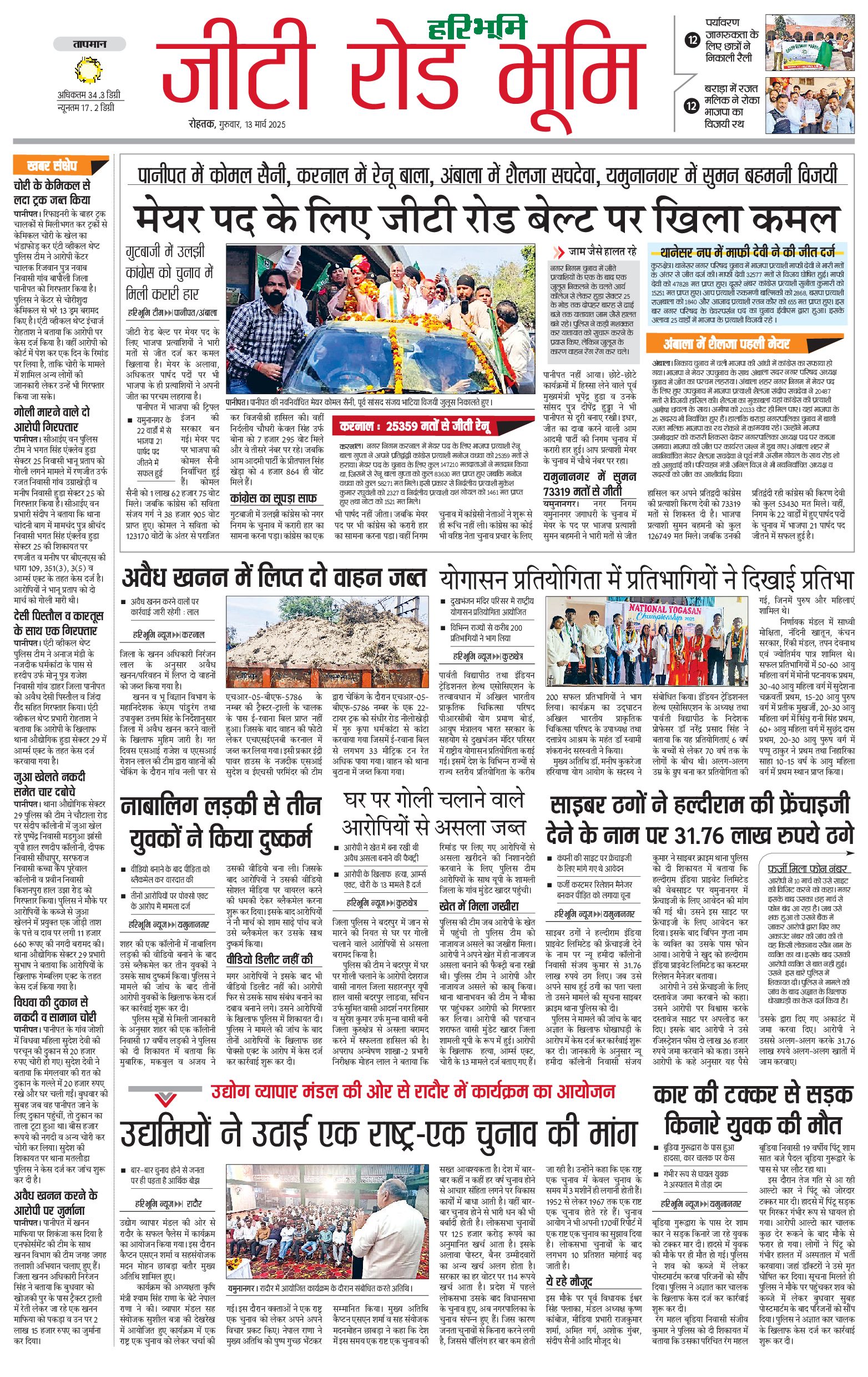 कुरुक्षेत्र - 13 Mar 2025 - - Page 1