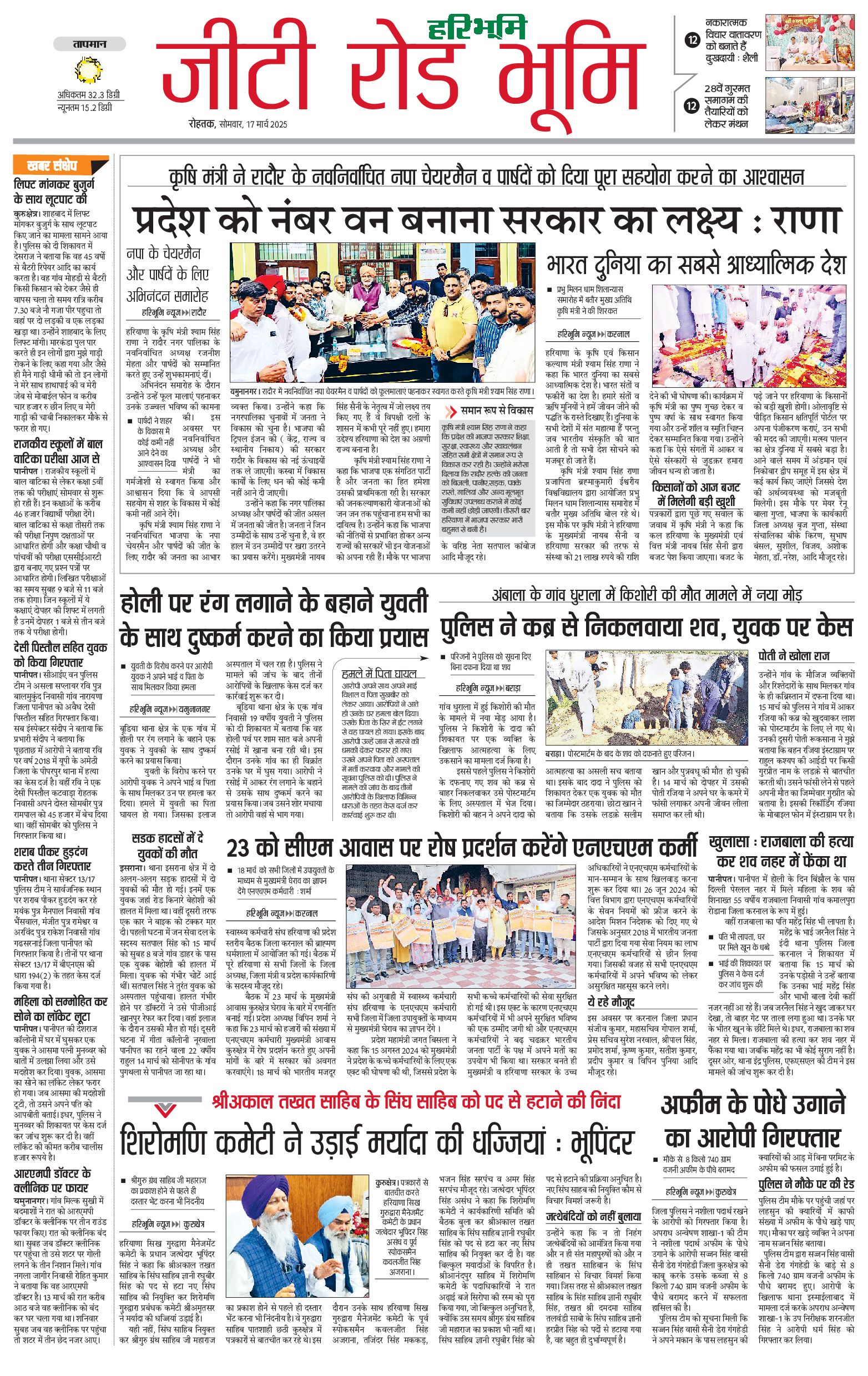 कुरुक्षेत्र - 17 Mar 2025 - - Page 1