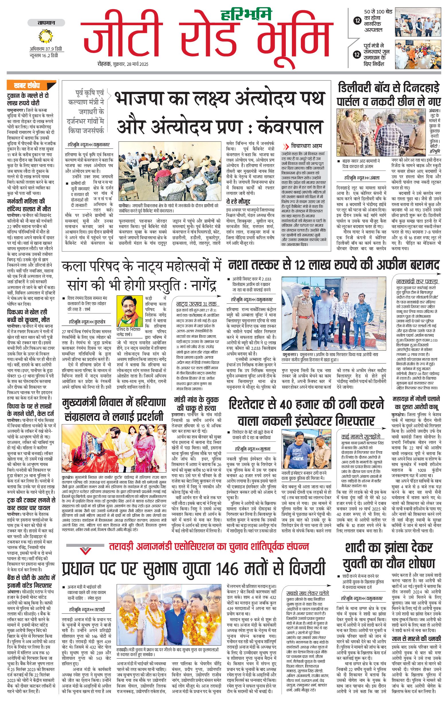 कुरुक्षेत्र - 28 Mar 2025 - - Page 1