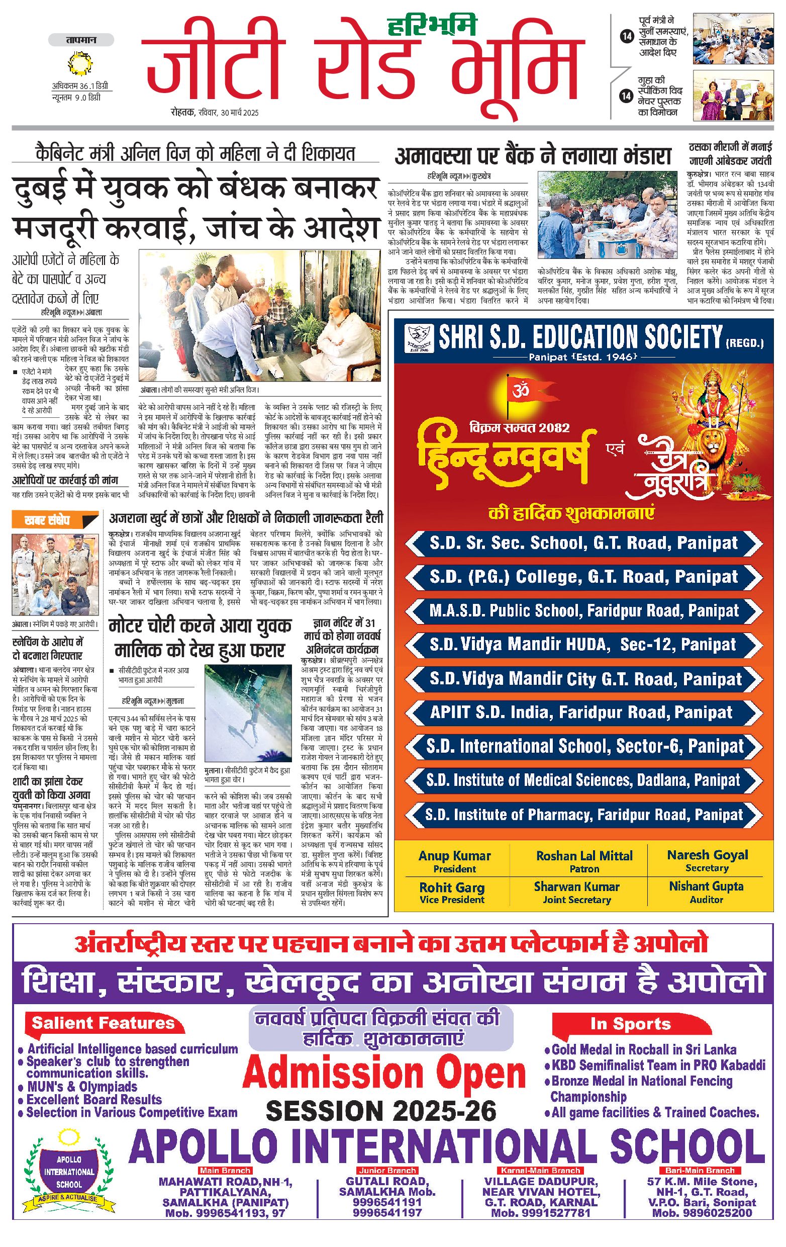 कुरुक्षेत्र - 30 Mar 2025 - - Page 1