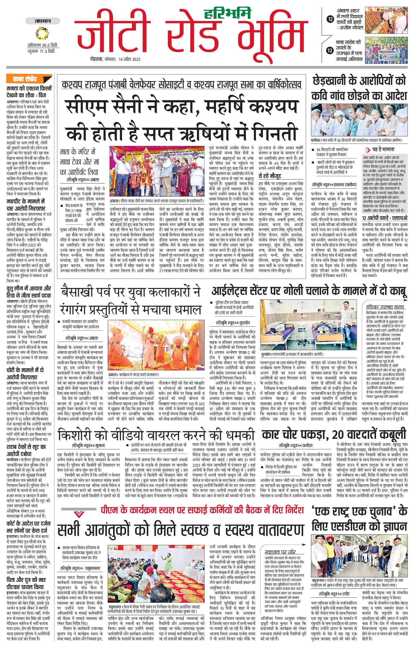 कुरुक्षेत्र - 14 Apr 2025 - - Page 1
