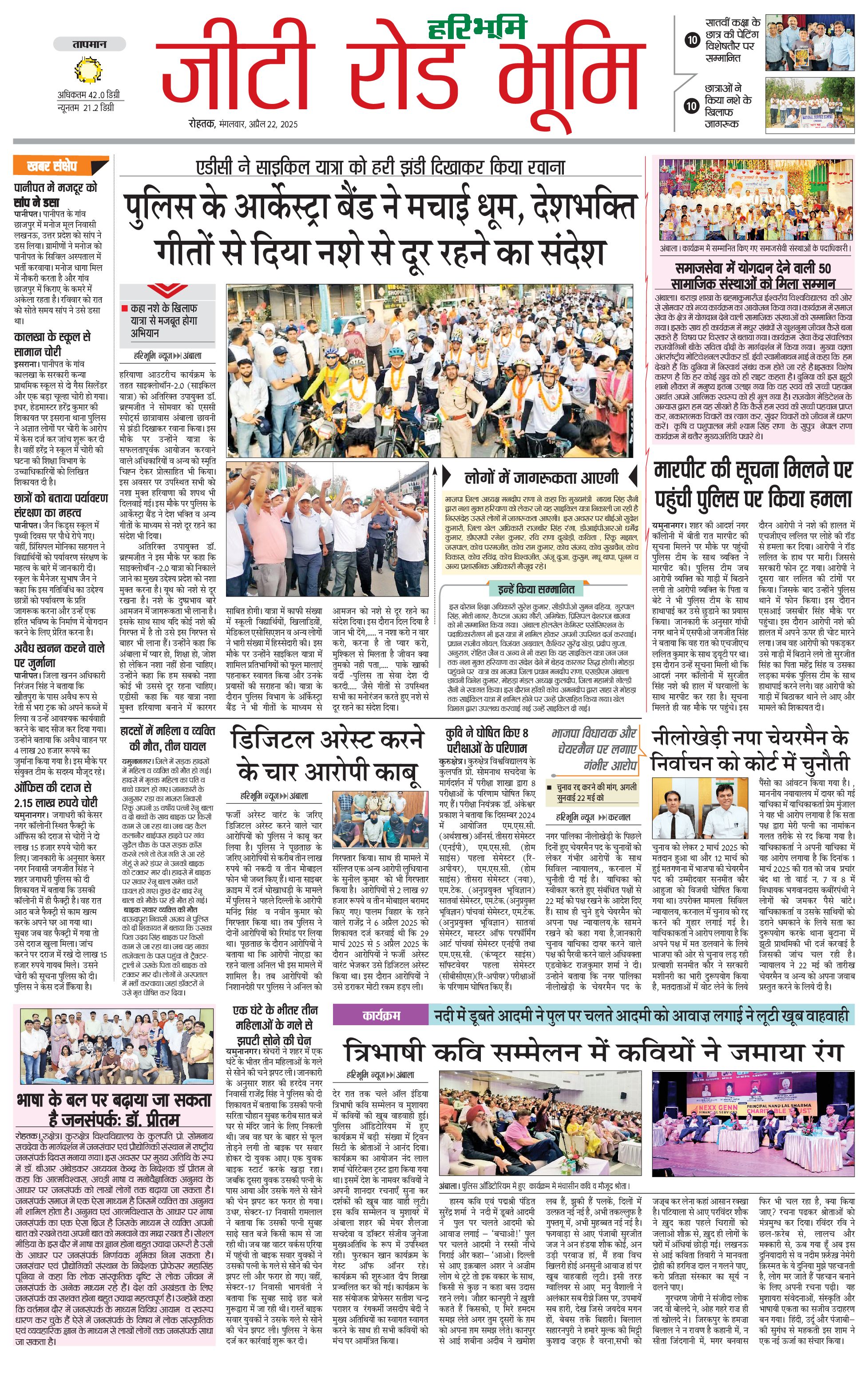 कुरुक्षेत्र - 22 Apr 2025 - - Page 1