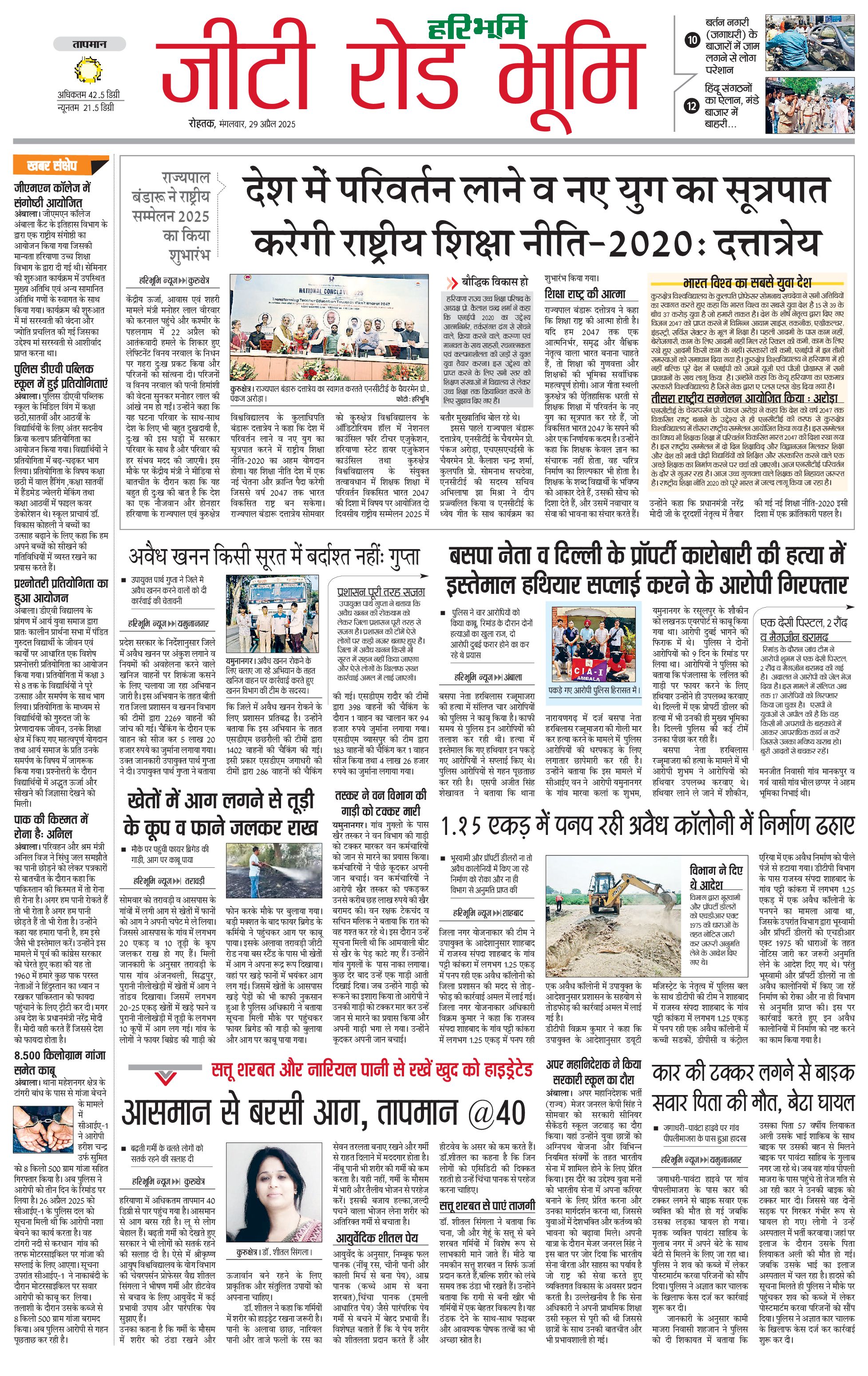 कुरुक्षेत्र - 29 Apr 2025 - - Page 1