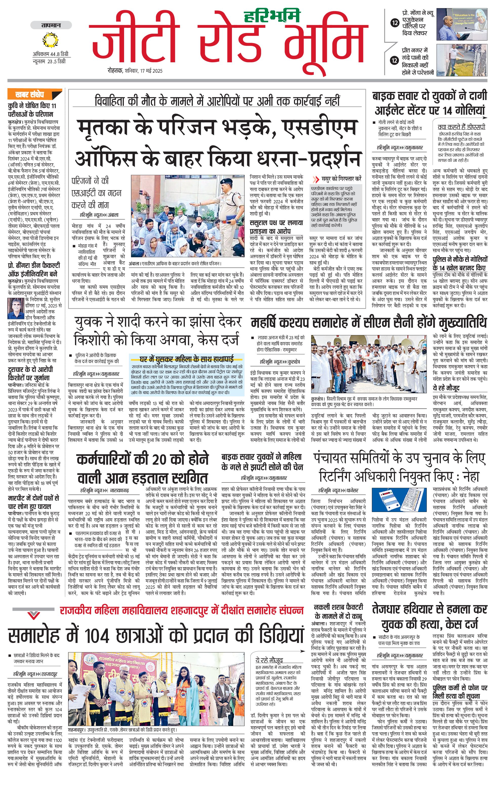 कुरुक्षेत्र - 17 May 2025 - - Page 1