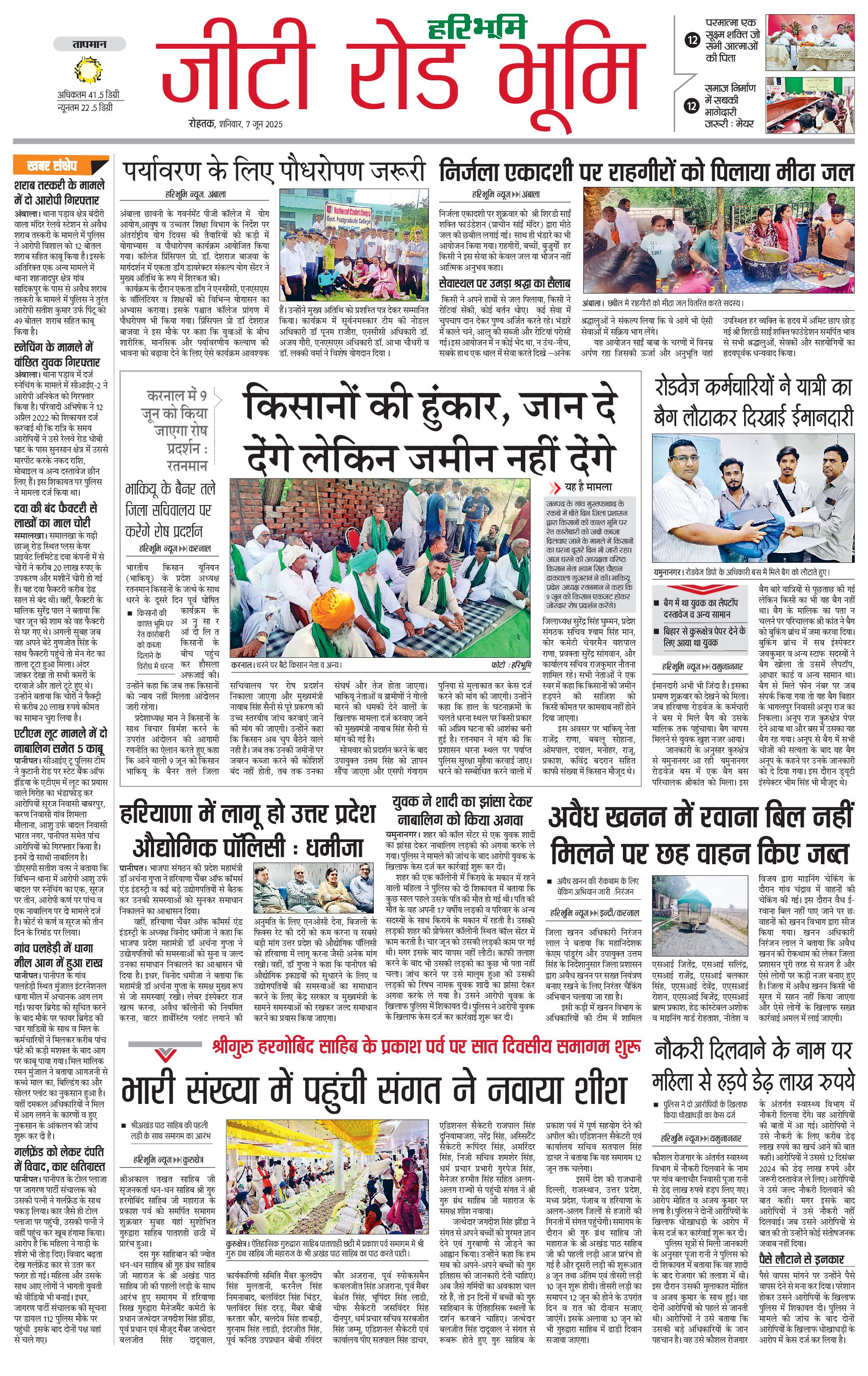 कुरुक्षेत्र - 07 Jun 2025 - - Page 1