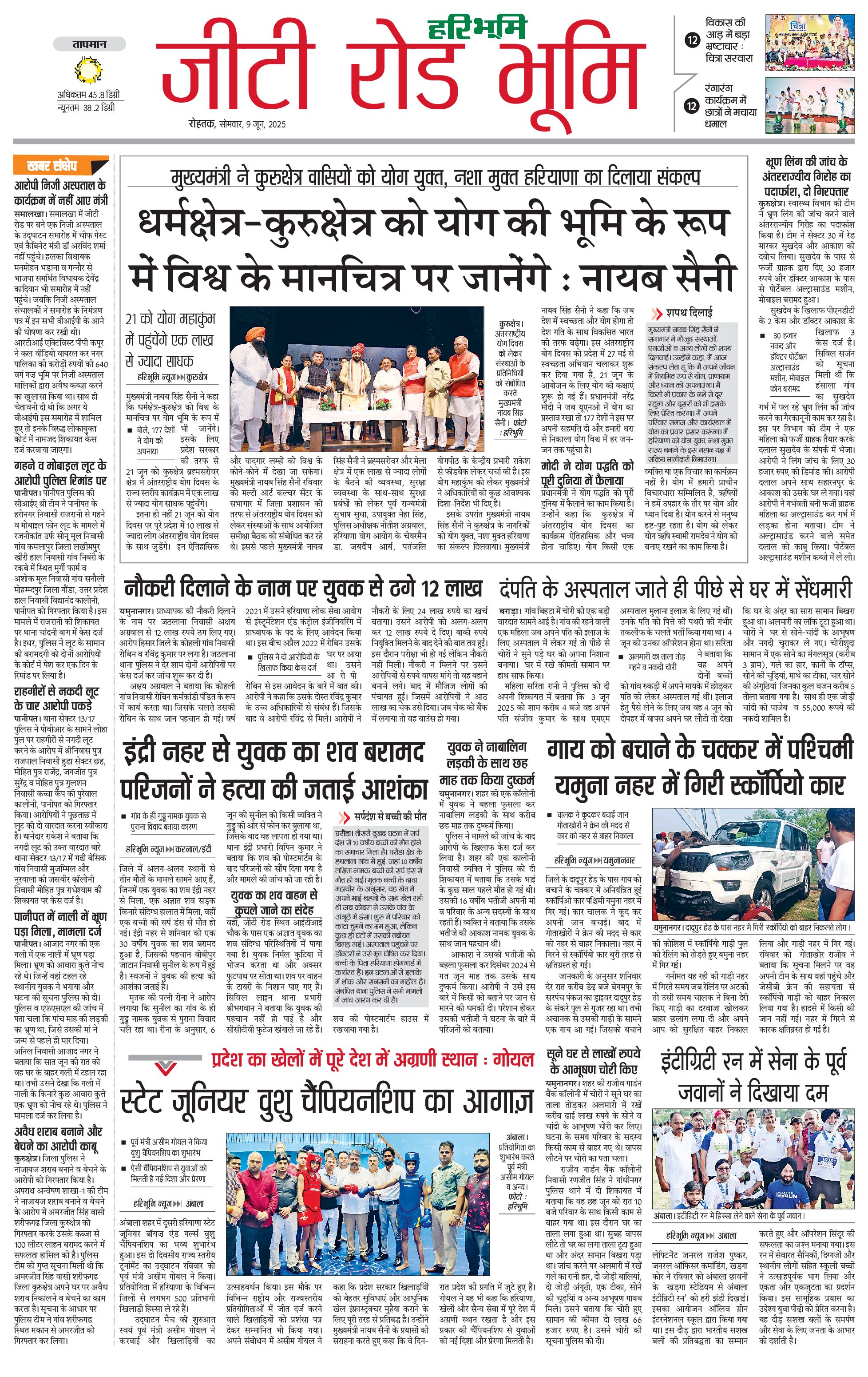 कुरुक्षेत्र - 09 Jun 2025 - - Page 1