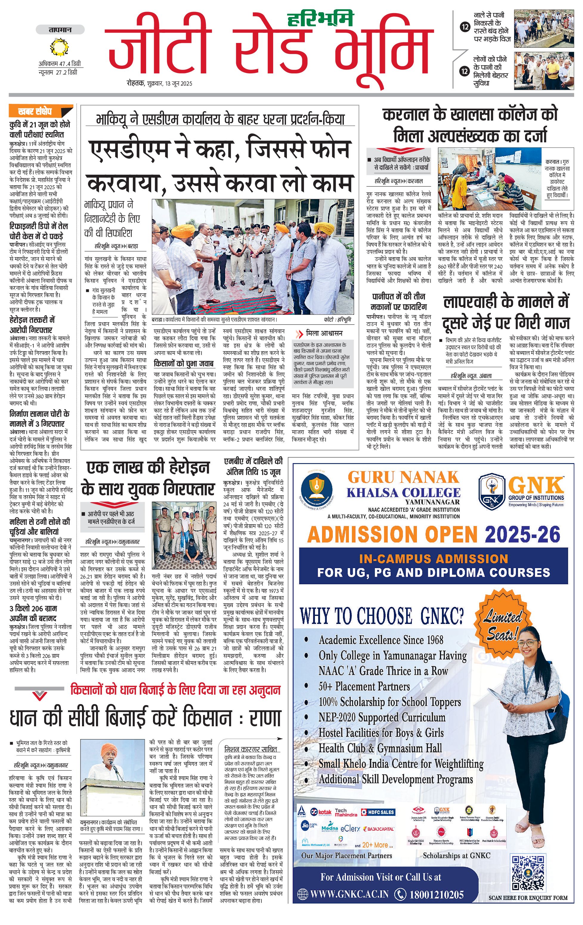 कुरुक्षेत्र - 13 Jun 2025 - - Page 1
