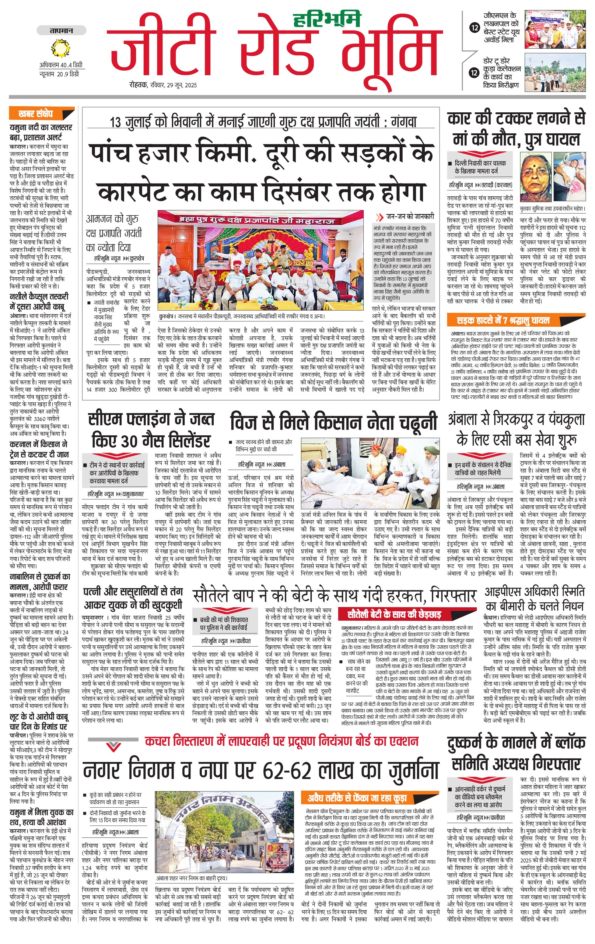 कुरुक्षेत्र - 29 Jun 2025 - - Page 1