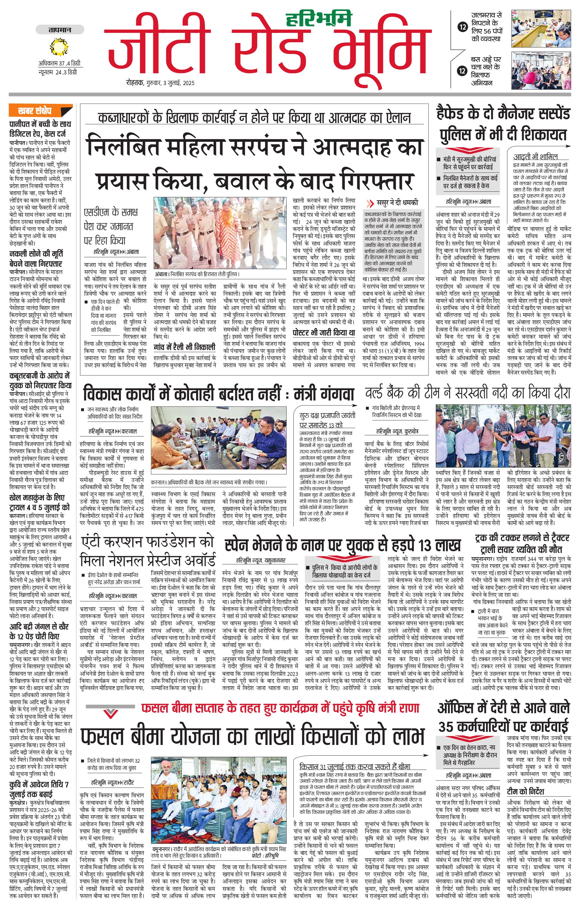 कुरुक्षेत्र - 03 Jul 2025 - - Page 1