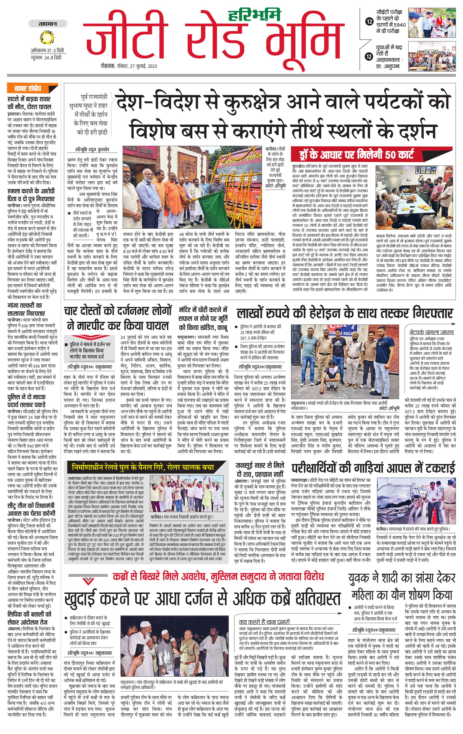 कुरुक्षेत्र - 27 Jul 2025 - - Page 1