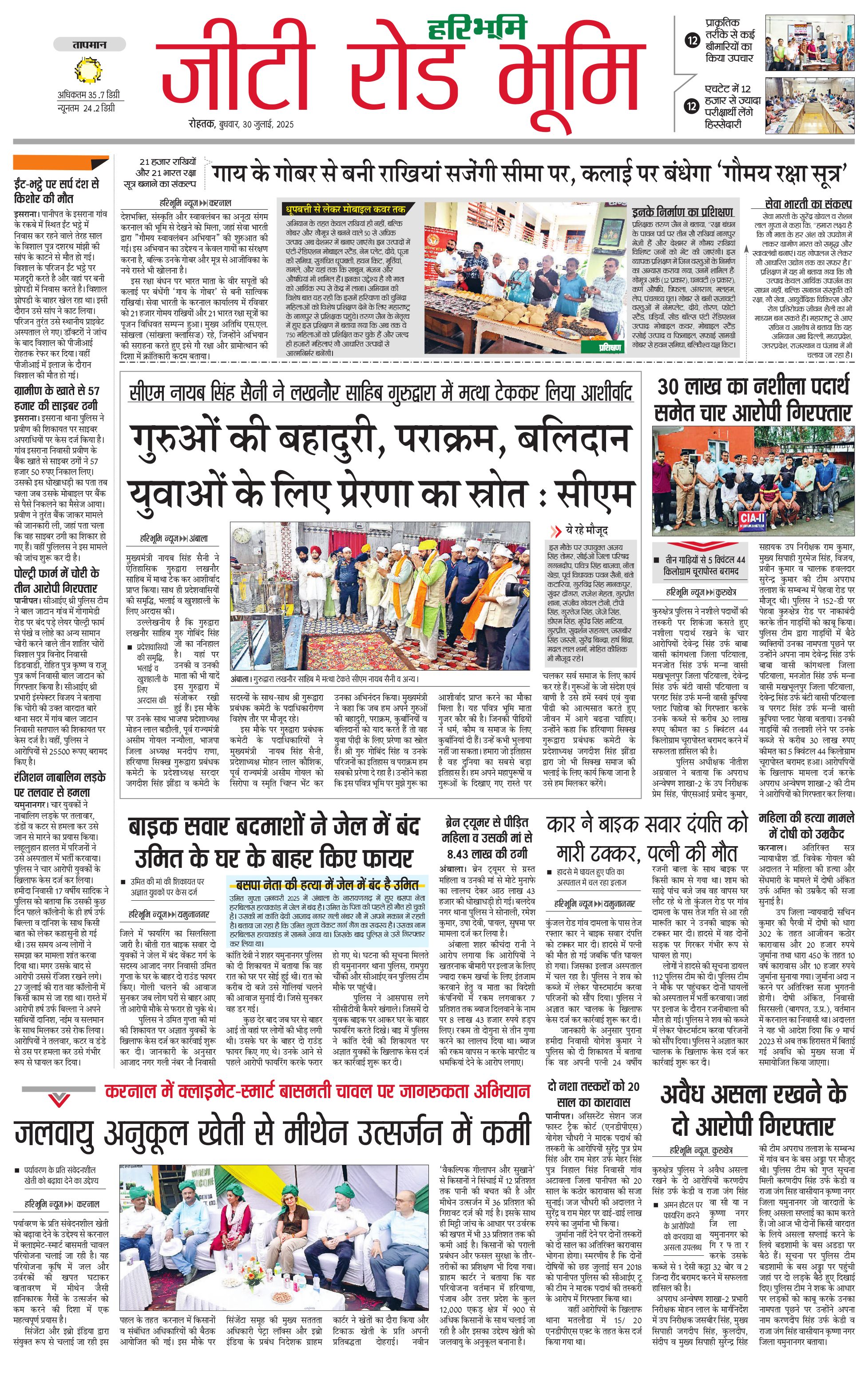 कुरुक्षेत्र - 30 Jul 2025 - - Page 1