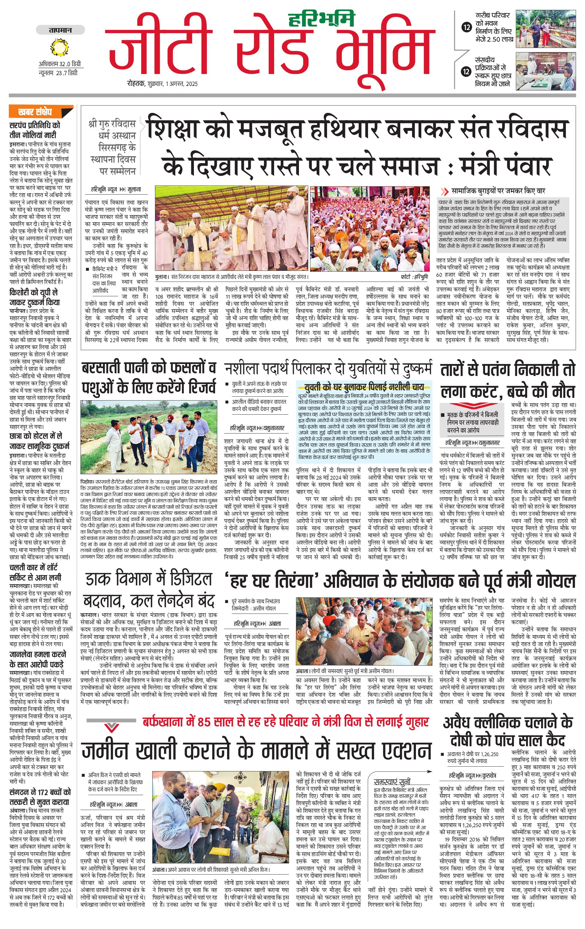 कुरुक्षेत्र - 01 Aug 2025 - - Page 1