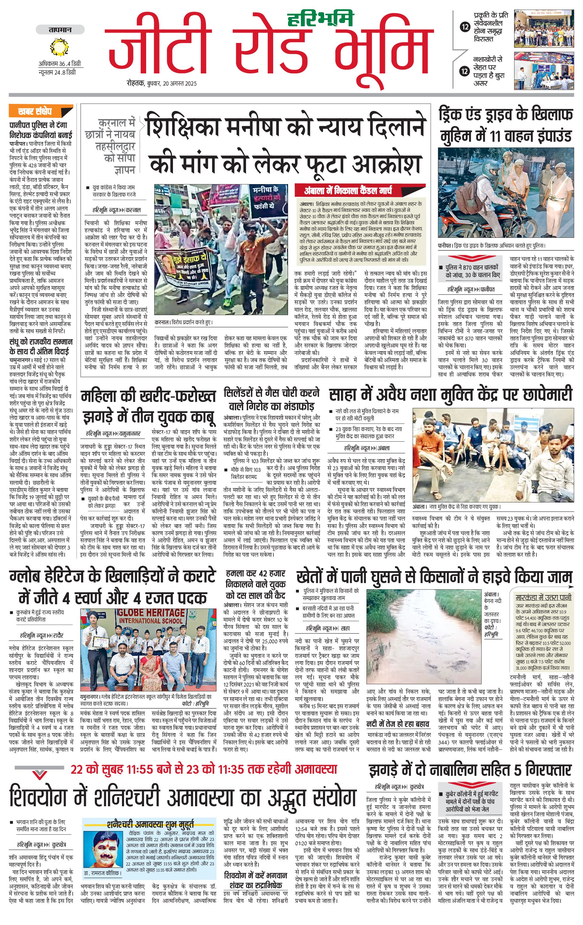 कुरुक्षेत्र - 20 Aug 2025 - - Page 1