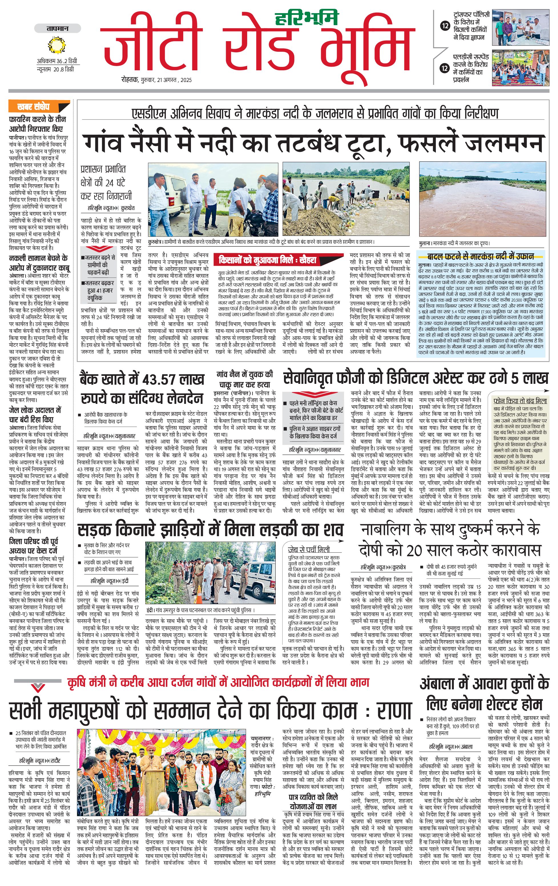 कुरुक्षेत्र - 21 Aug 2025 - - Page 1