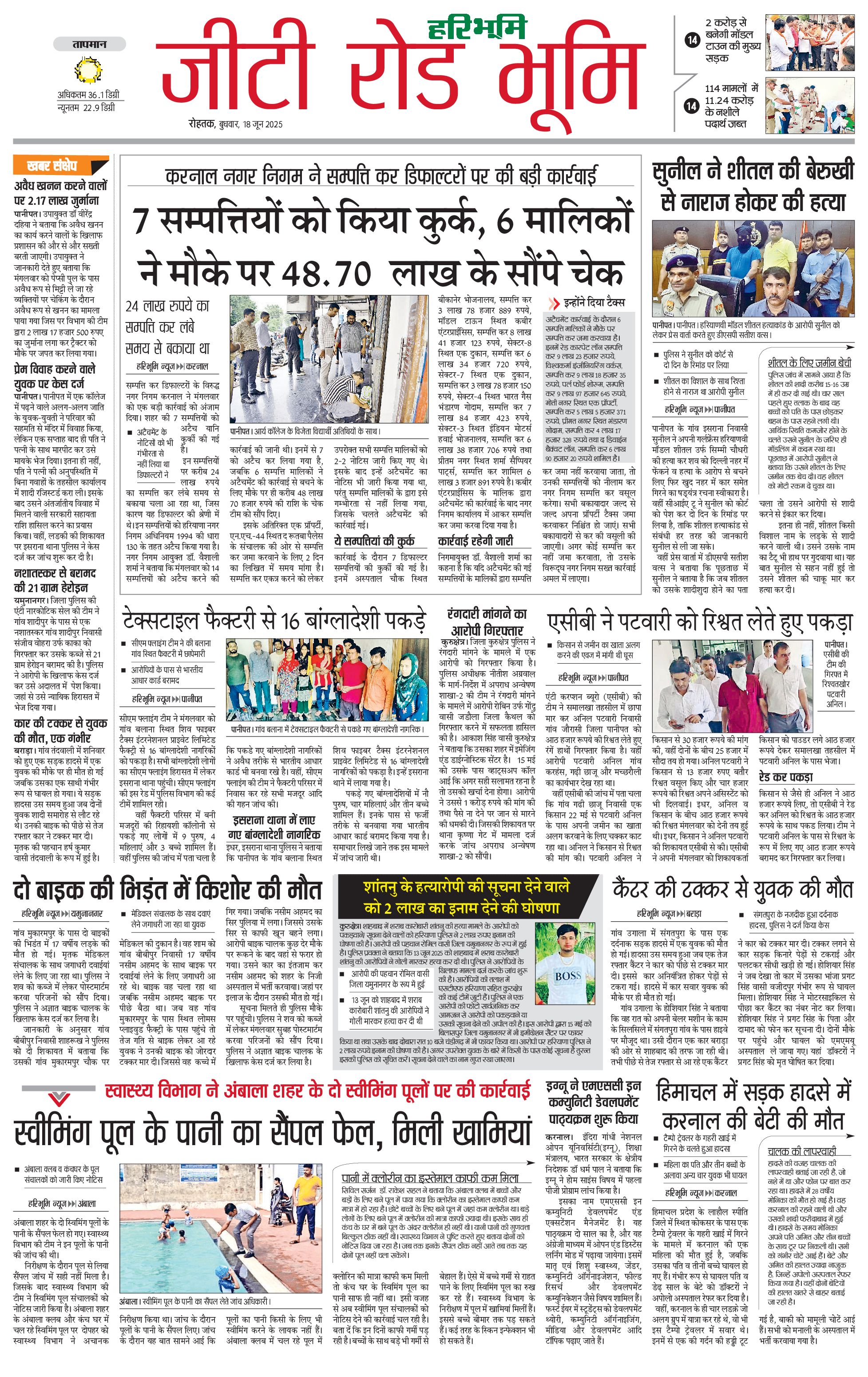कुरुक्षेत्र - 18 Jun 2025 - - Page 1