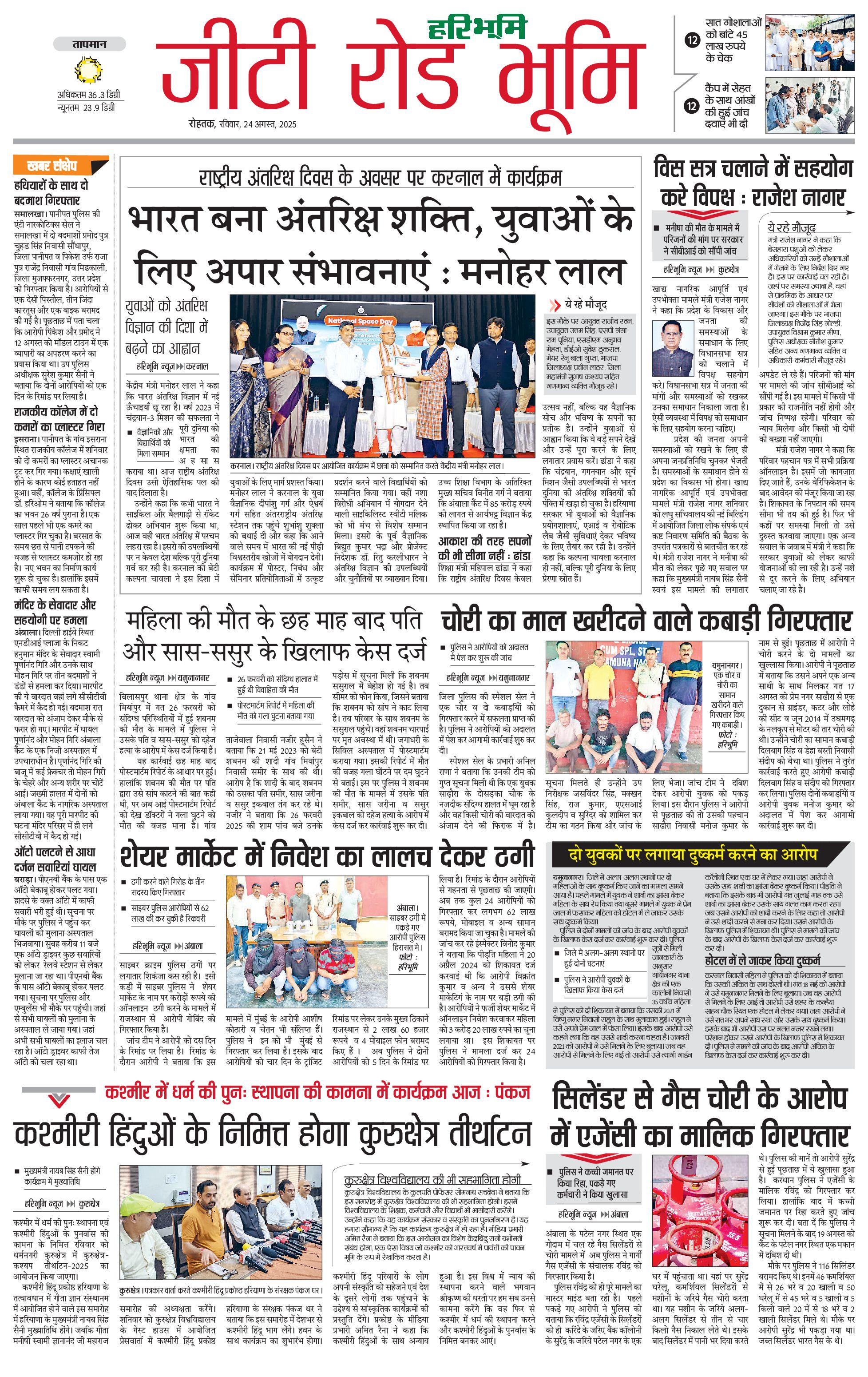 कुरुक्षेत्र - 24 Aug 2025 - - Page 1