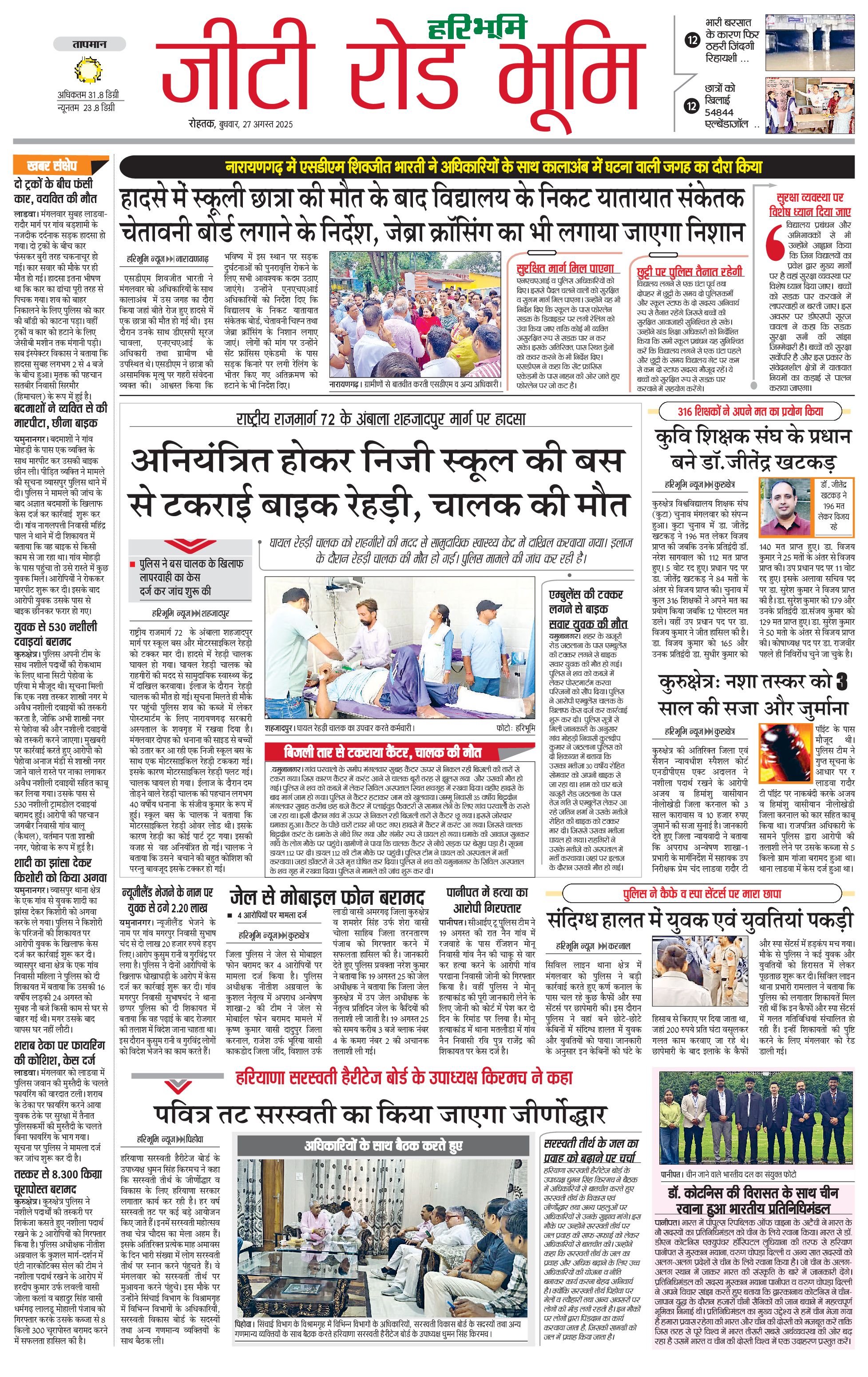 कुरुक्षेत्र - 27 Aug 2025 - - Page 1
