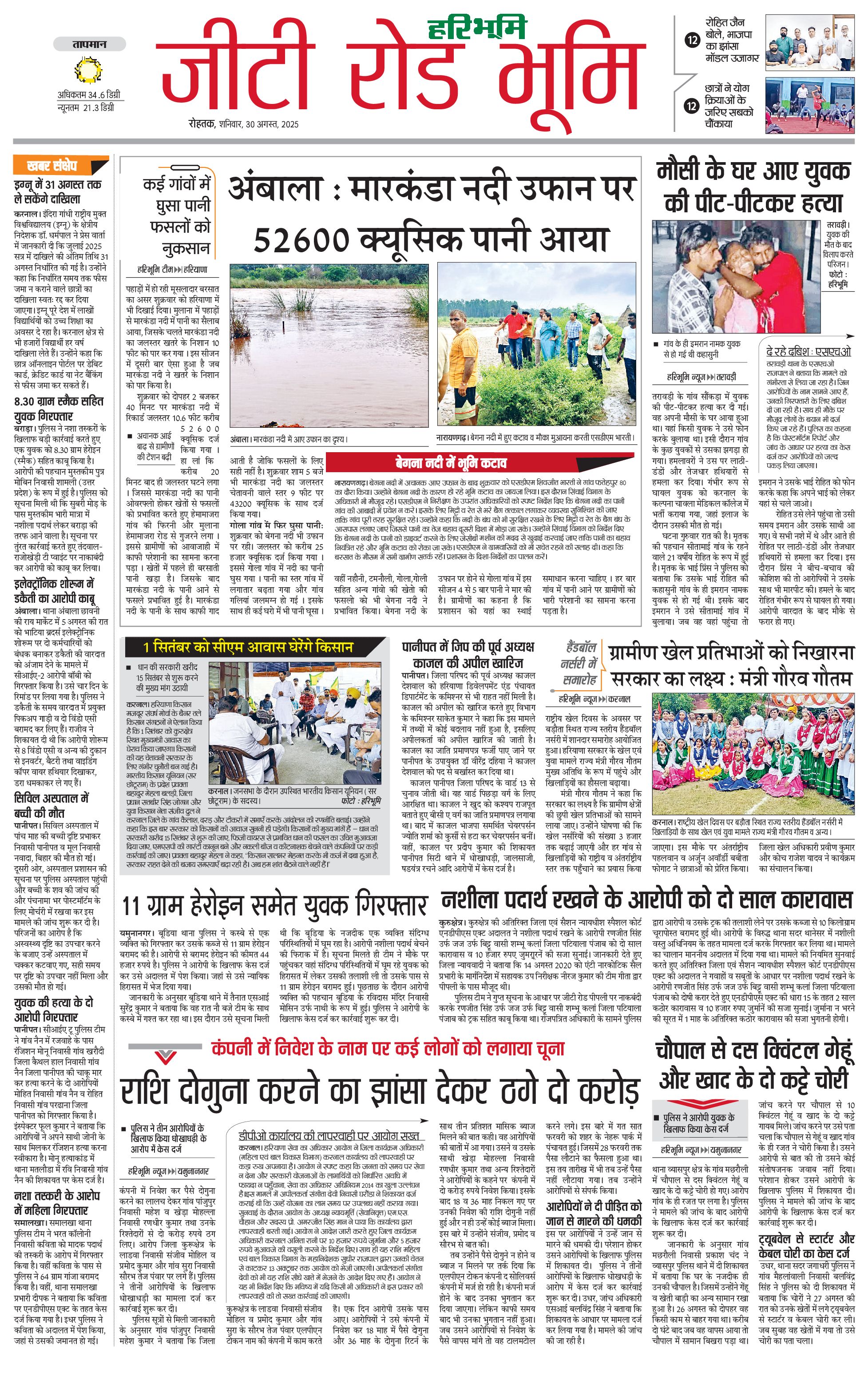 कुरुक्षेत्र - 30 Aug 2025 - - Page 1