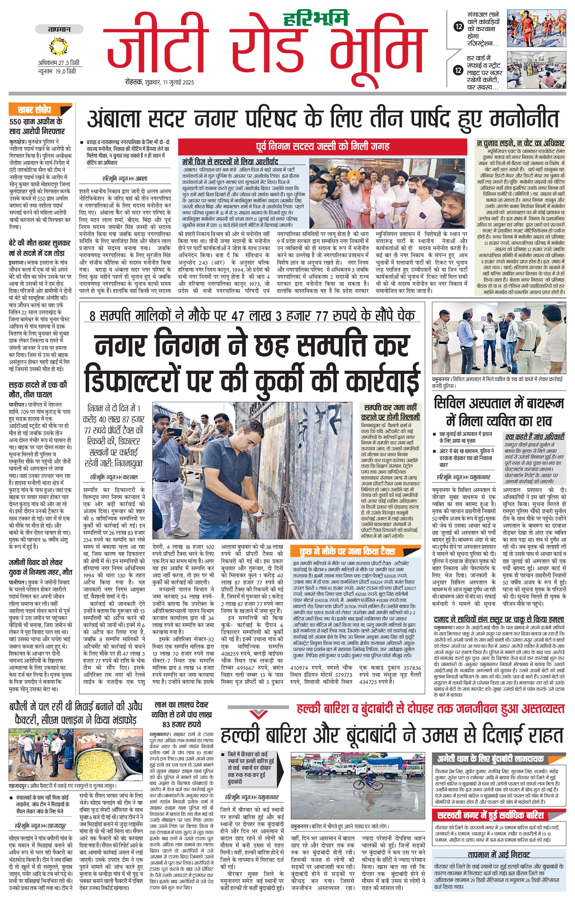 कुरुक्षेत्र - 11 Jul 2025 - - Page 1