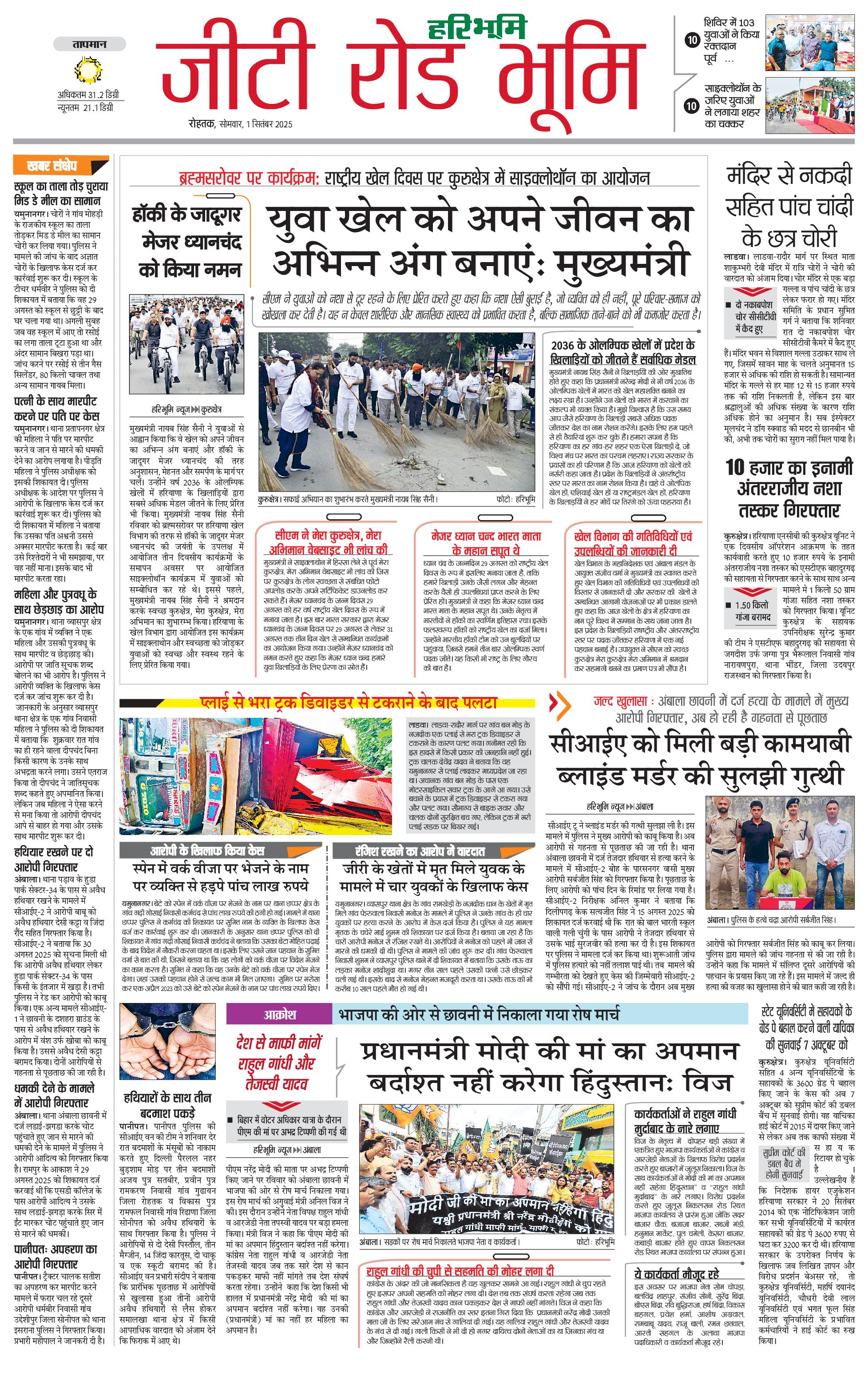 कुरुक्षेत्र - 01 Sep 2025 - - Page 1