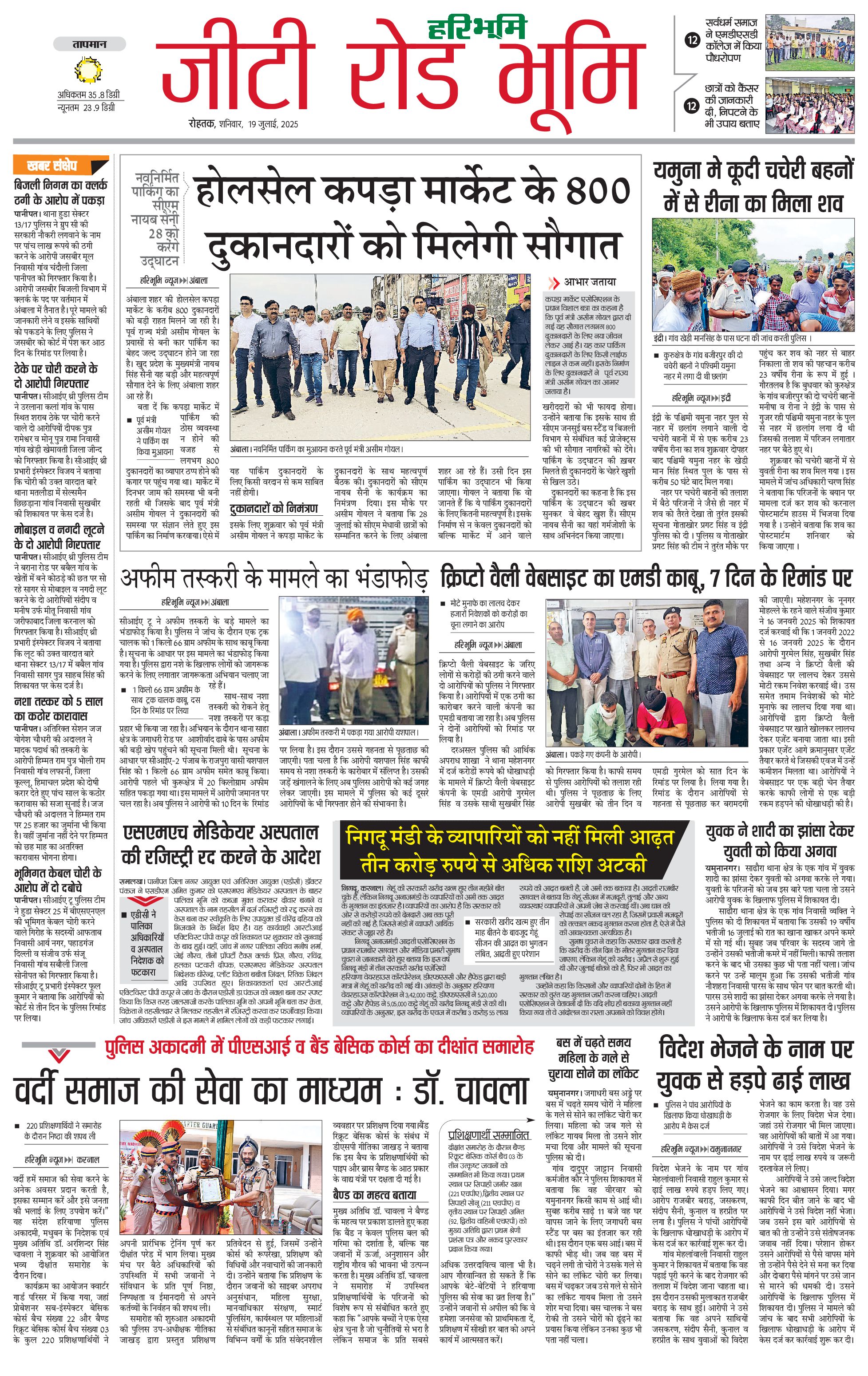 कुरुक्षेत्र - 19 Jul 2025 - - Page 1