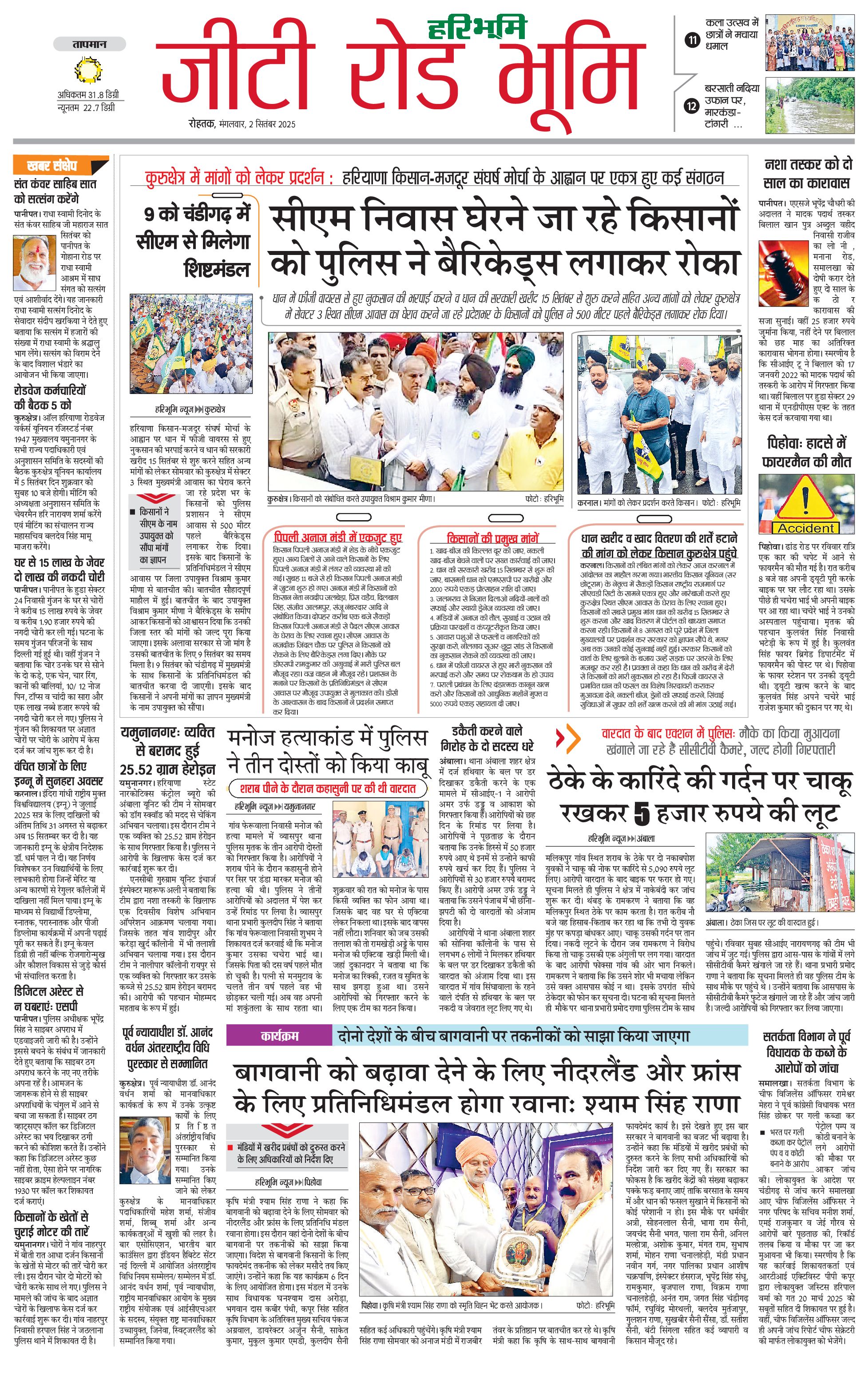 कुरुक्षेत्र - 02 Sep 2025 - - Page 1