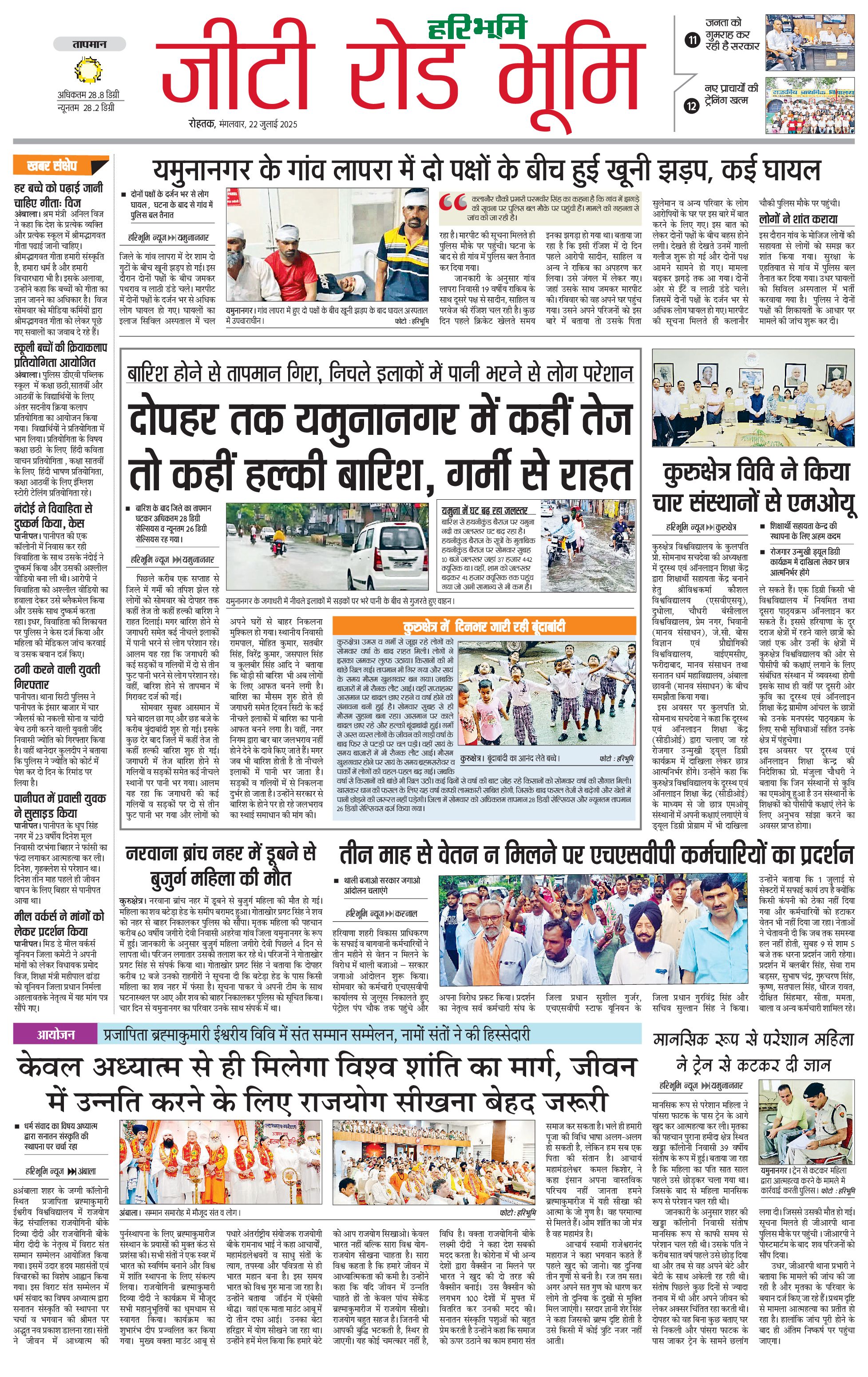 कुरुक्षेत्र - 22 Jul 2025 - - Page 1