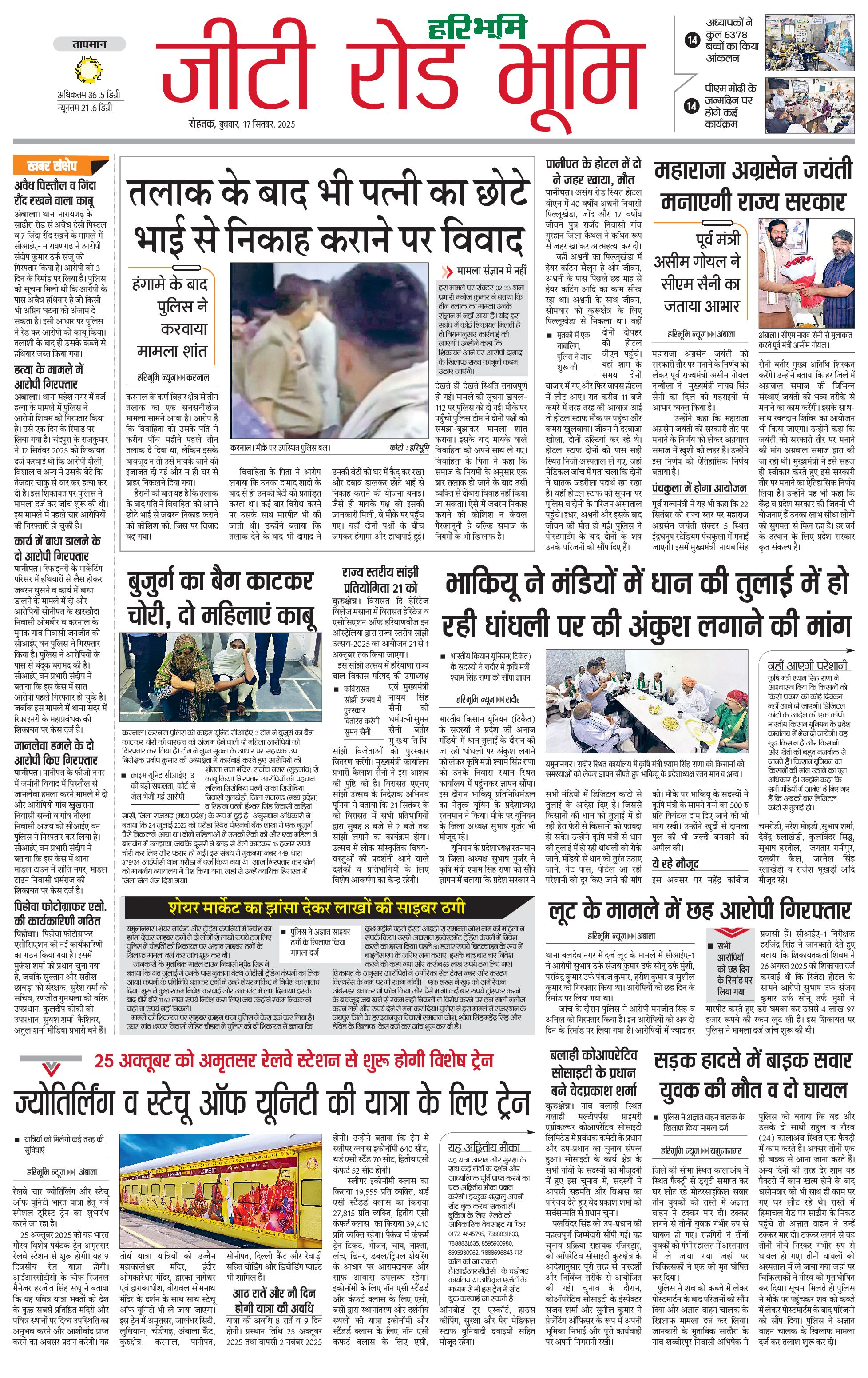 कुरुक्षेत्र - 17 Sep 2025 - - Page 1