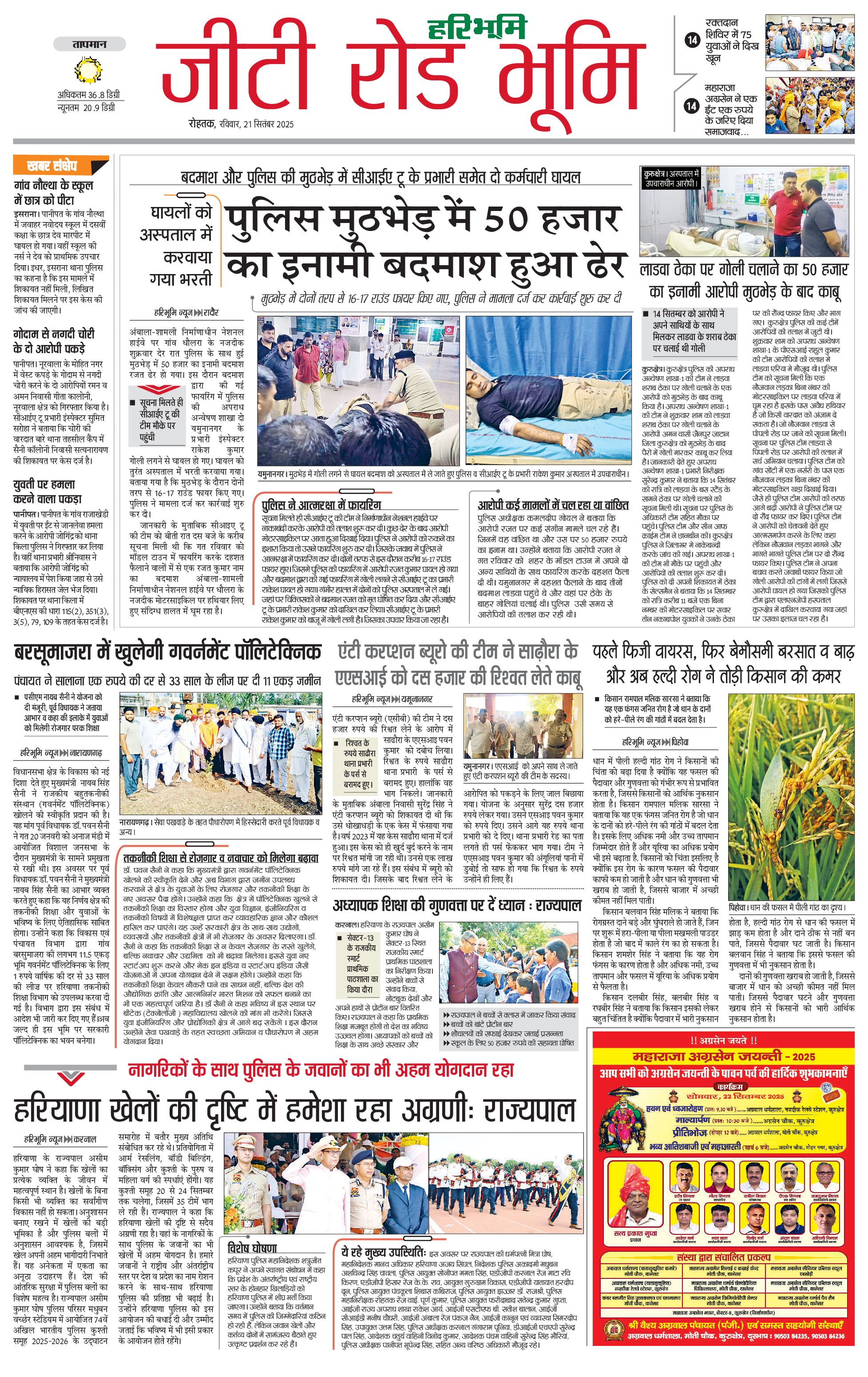 कुरुक्षेत्र - 21 Sep 2025 - - Page 1