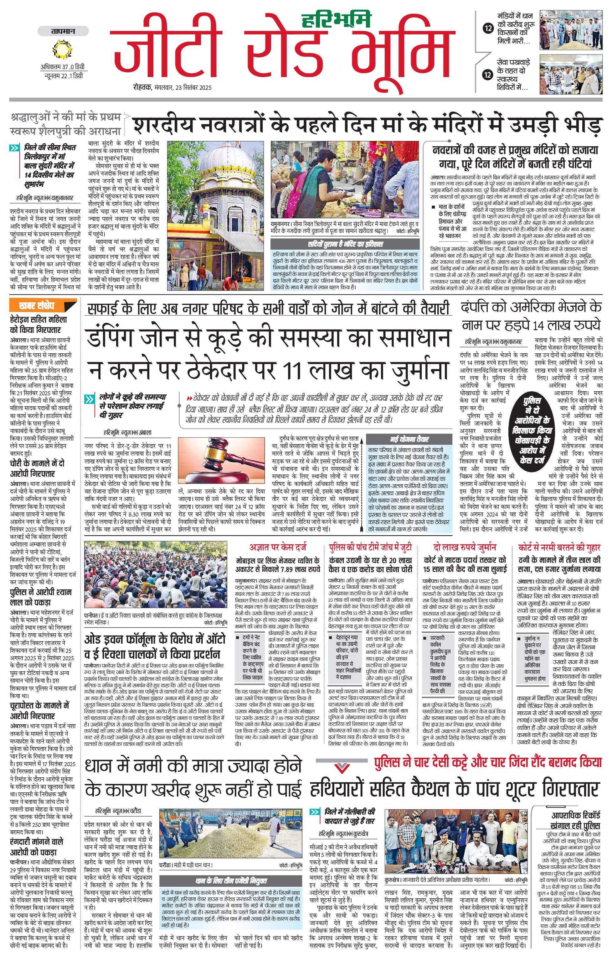 कुरुक्षेत्र - 23 Sep 2025 - - Page 1