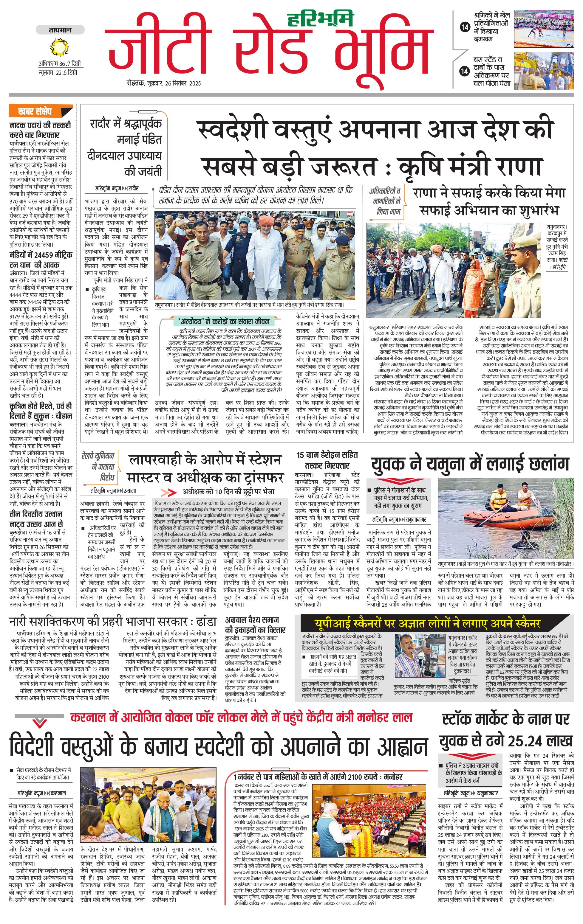 कुरुक्षेत्र - 26 Sep 2025 - - Page 1