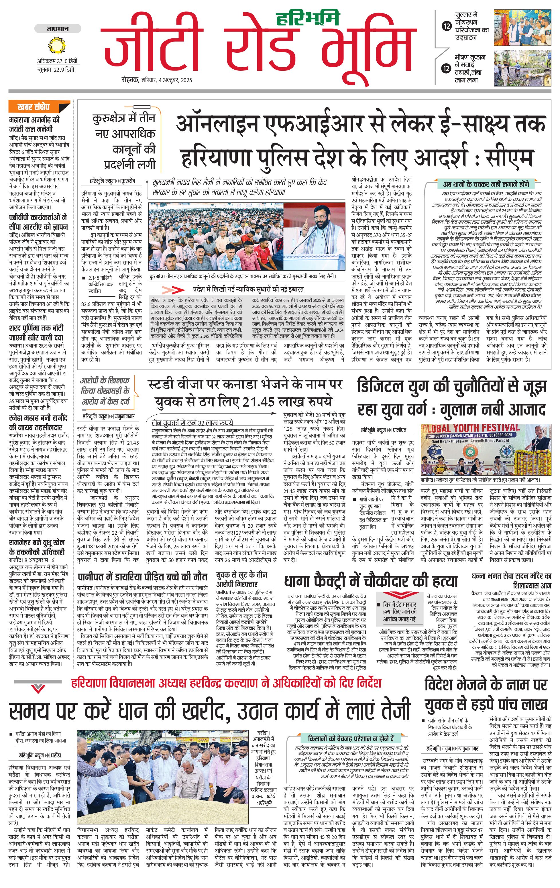 कुरुक्षेत्र - 04 Oct 2025 - - Page 1