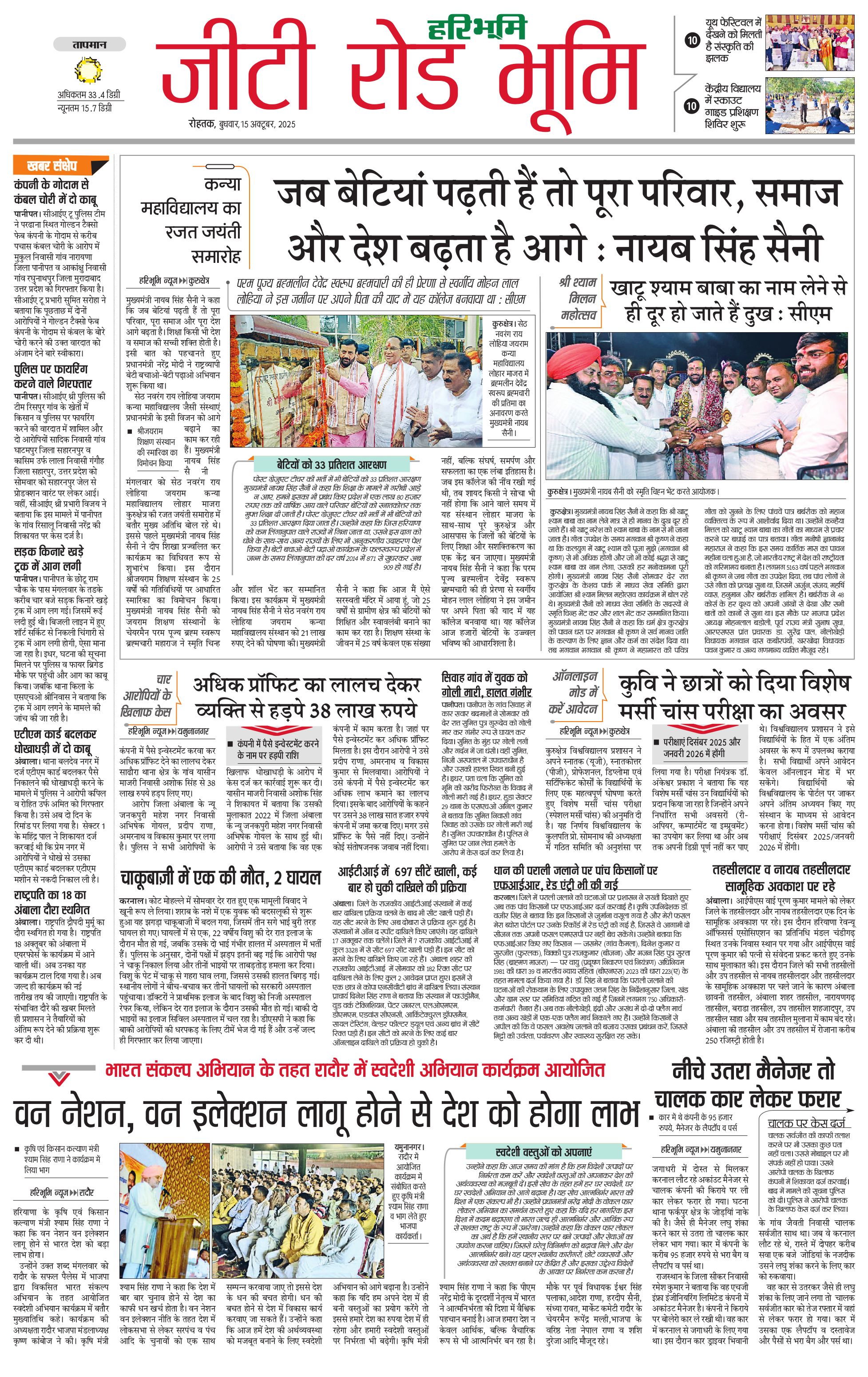कुरुक्षेत्र - 15 Oct 2025 - - Page 1