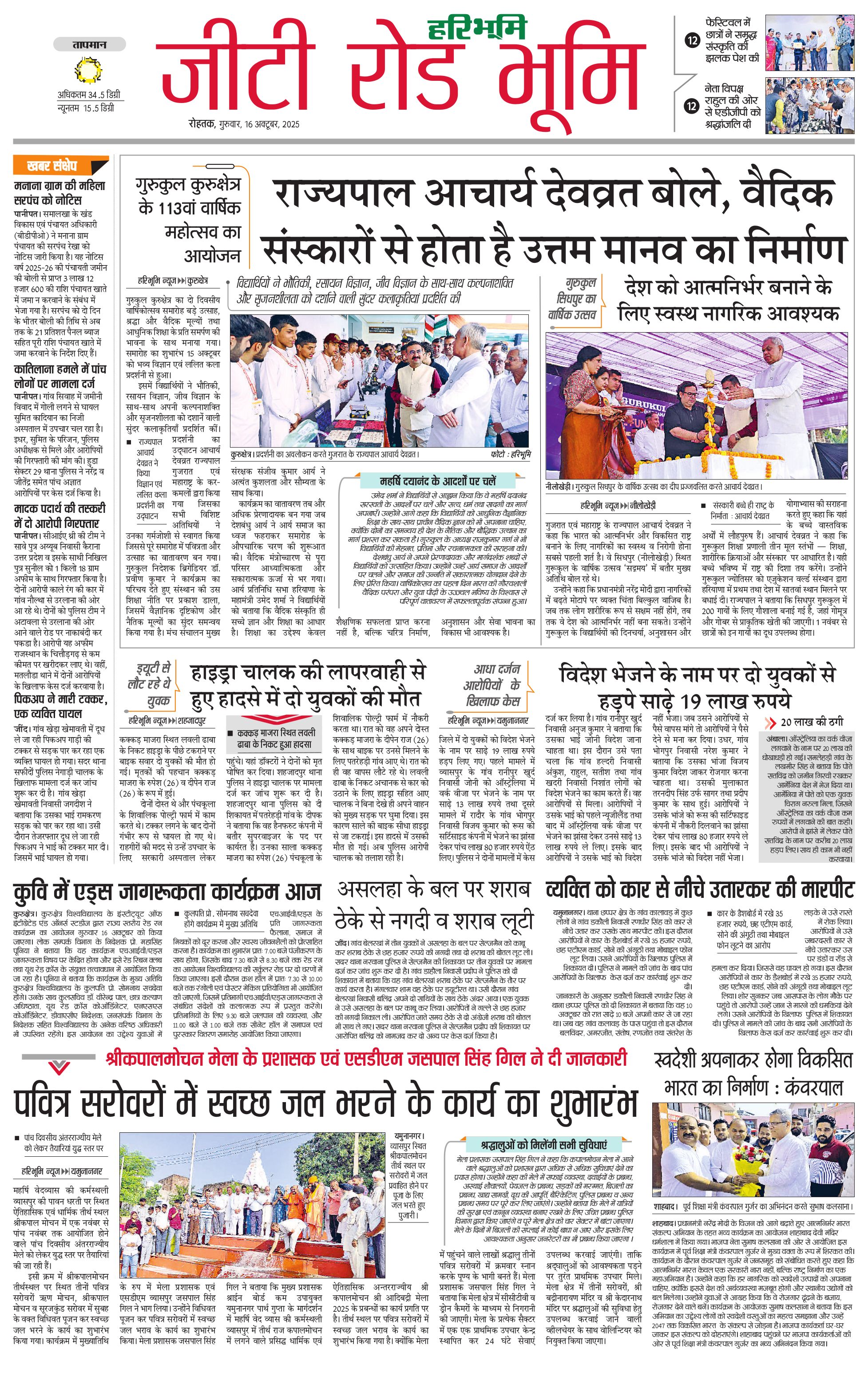कुरुक्षेत्र - 16 Oct 2025 - - Page 1