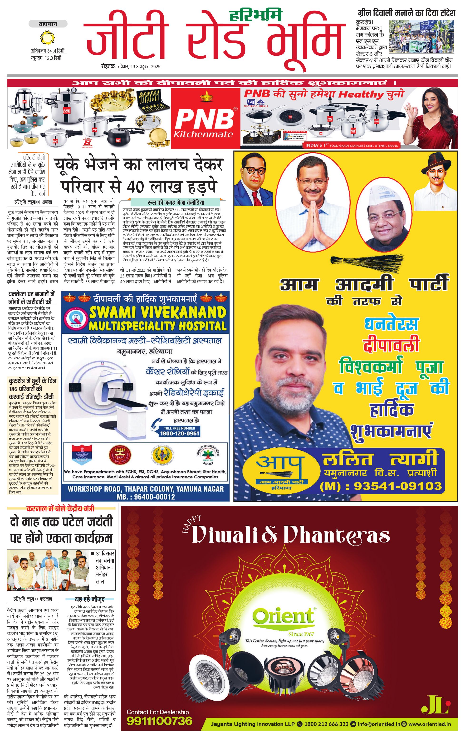 कुरुक्षेत्र - 19 Oct 2025 - - Page 1