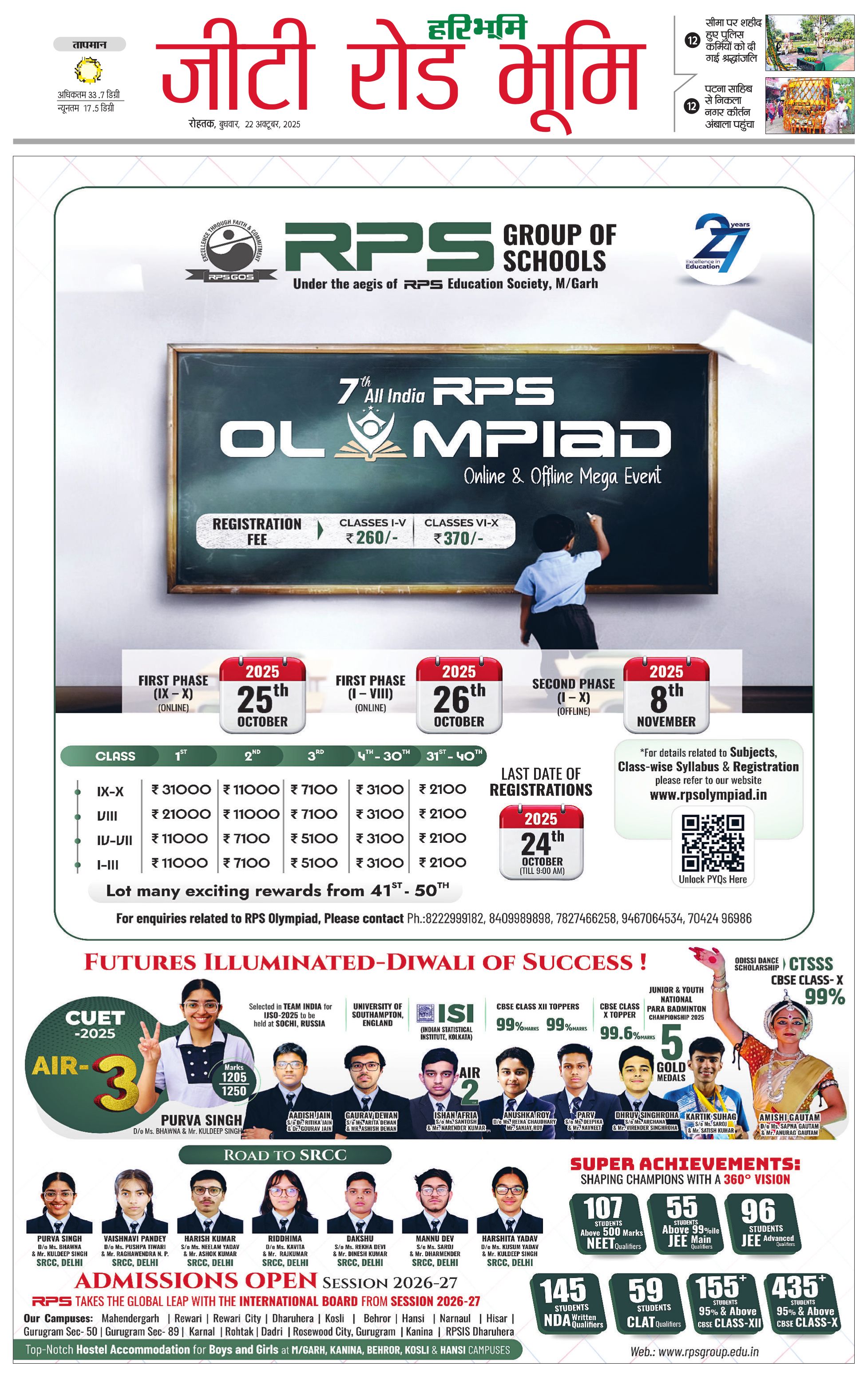 कुरुक्षेत्र - 22 Oct 2025 - - Page 1