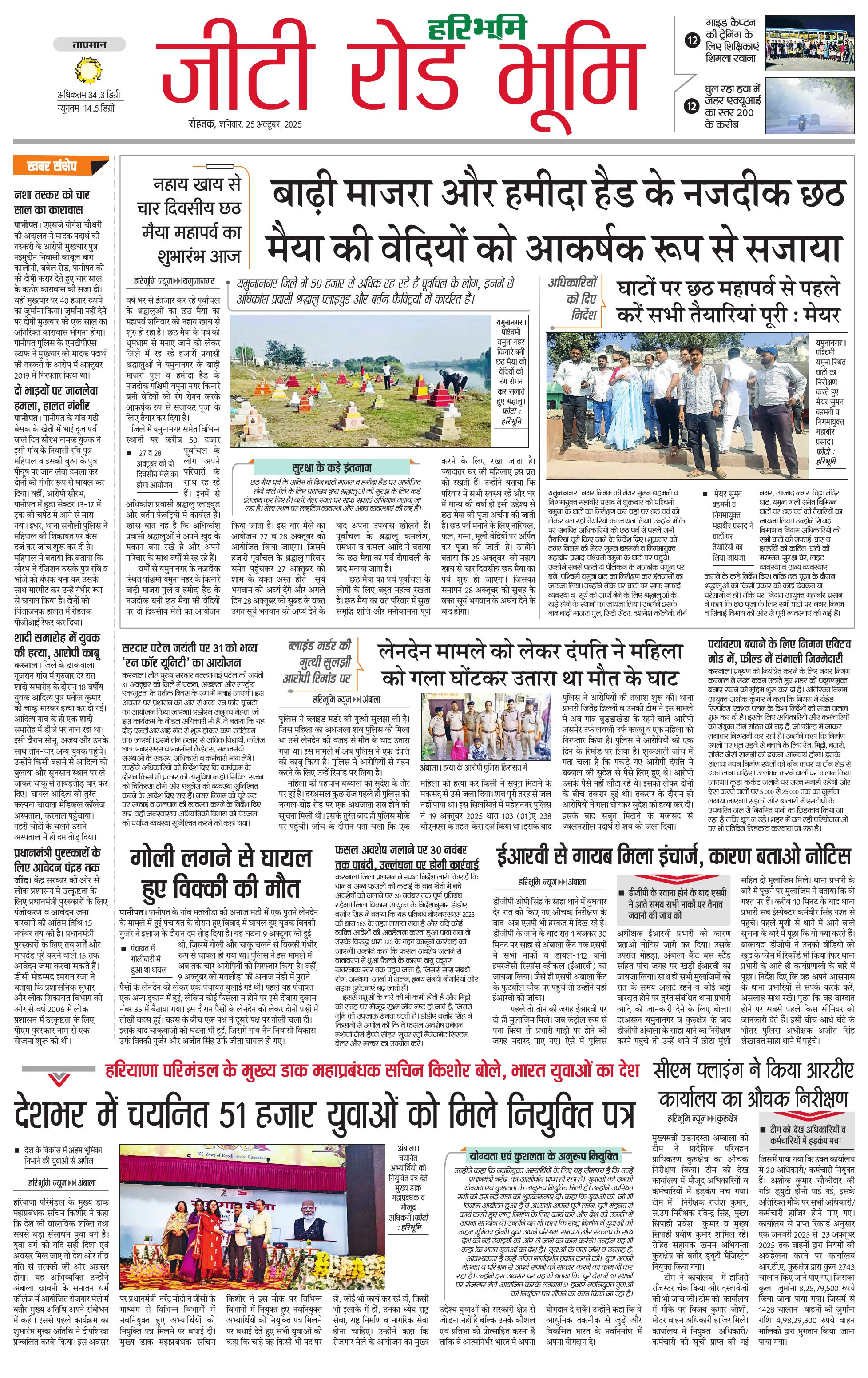 कुरुक्षेत्र - 25 Oct 2025 - - Page 1