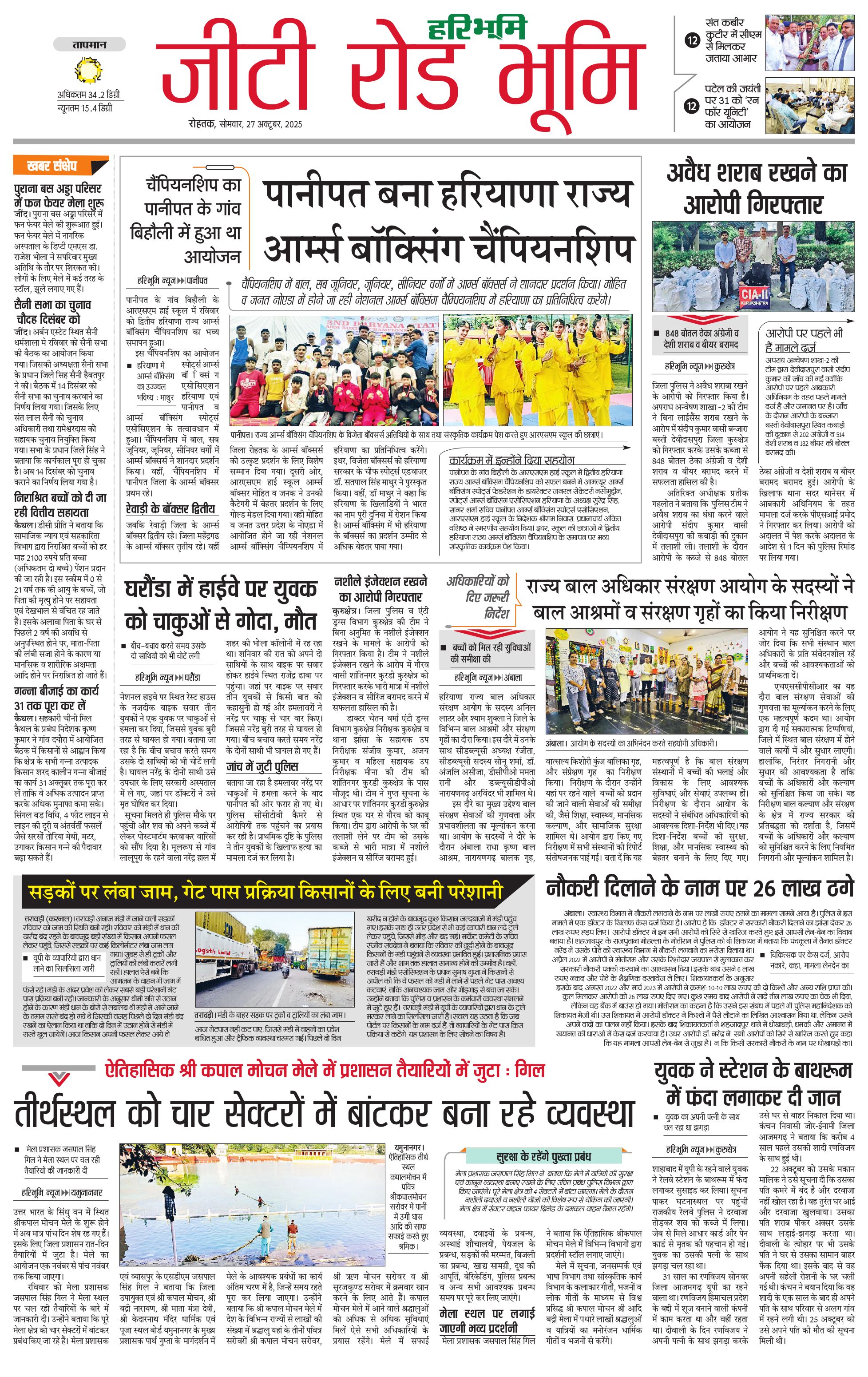 कुरुक्षेत्र - 27 Oct 2025 - - Page 1