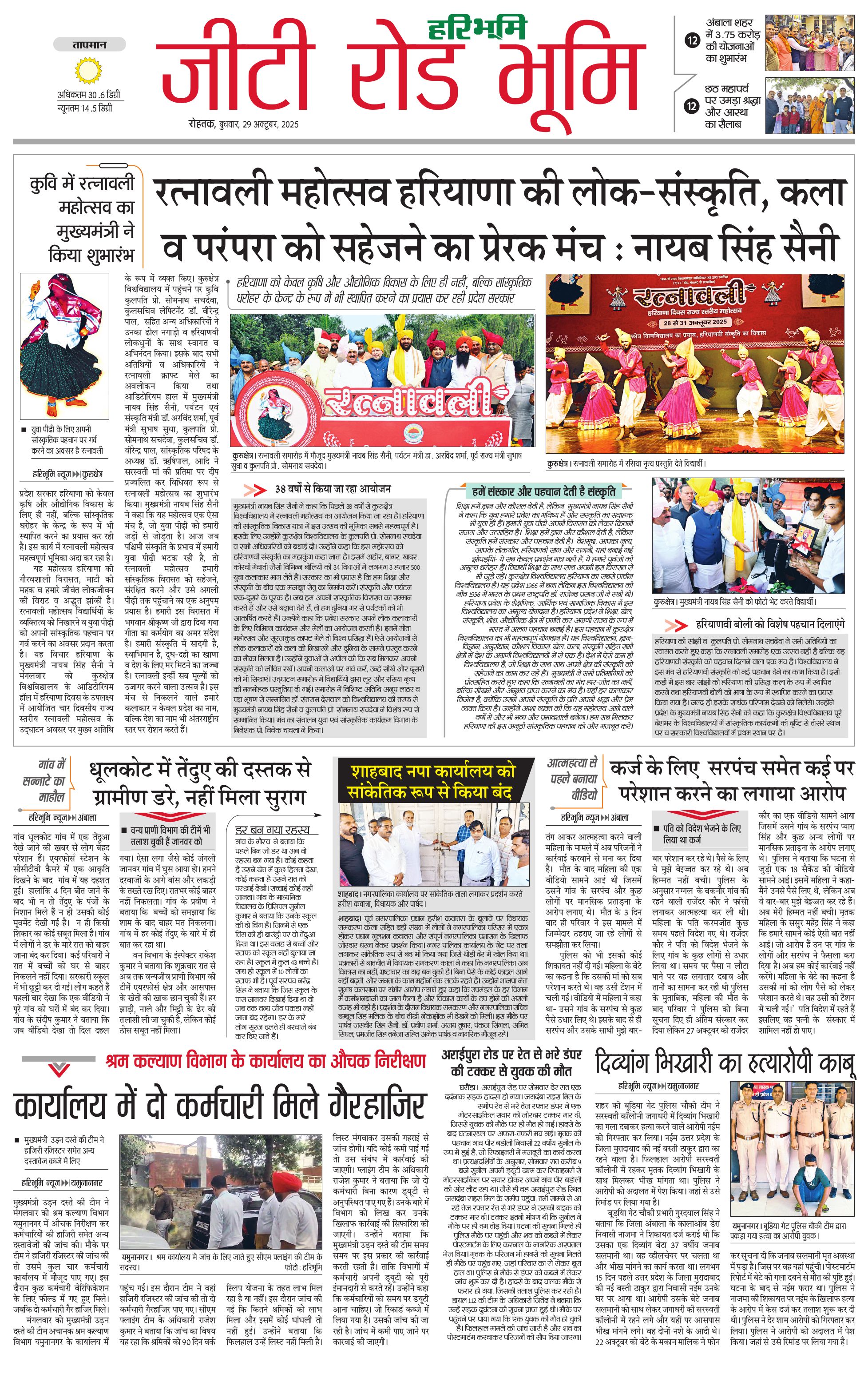 कुरुक्षेत्र - 29 Oct 2025 - - Page 1